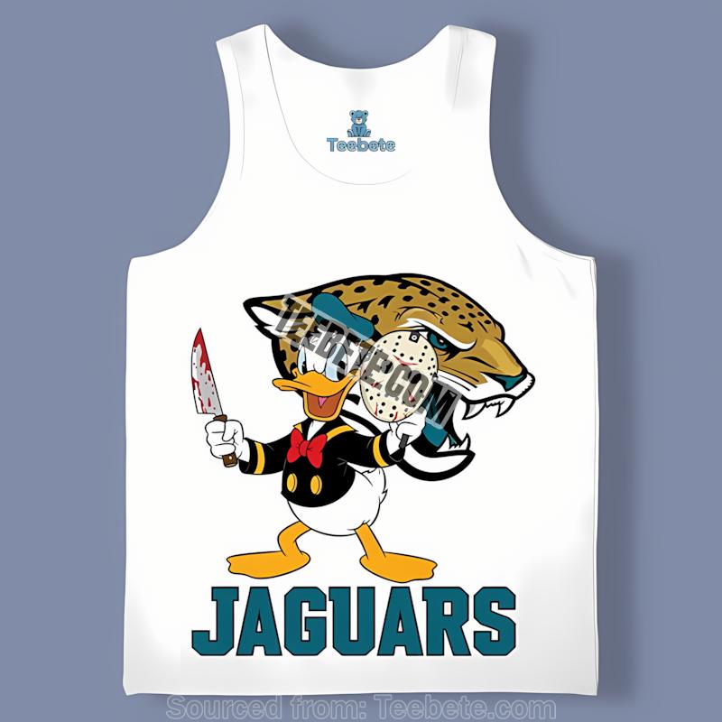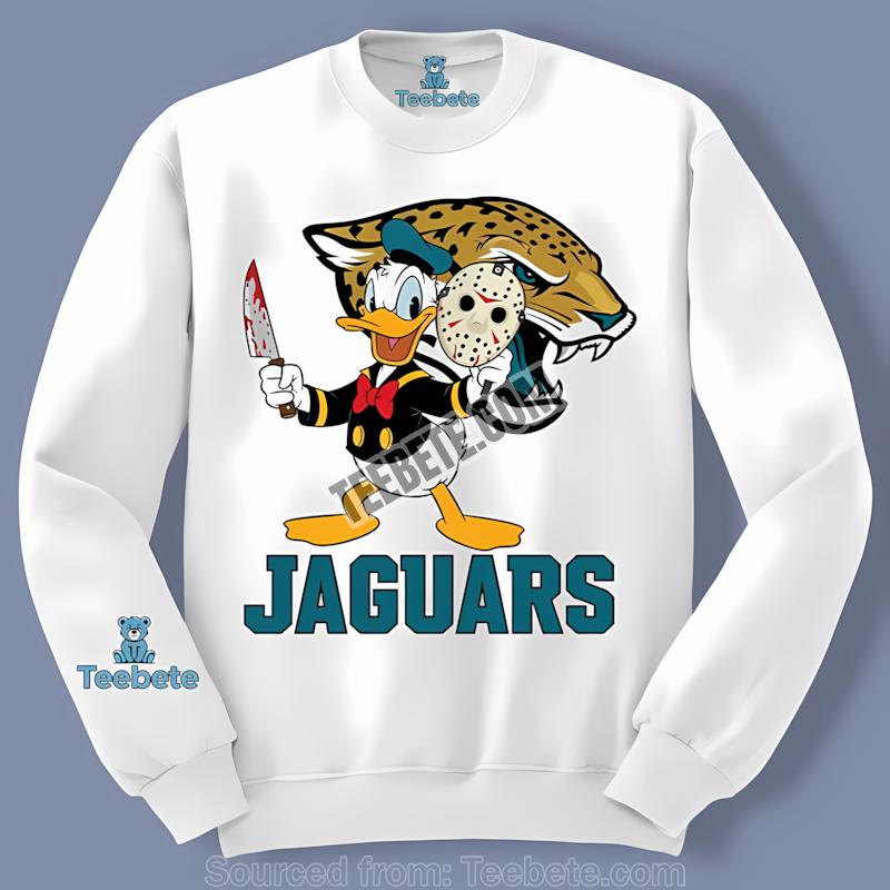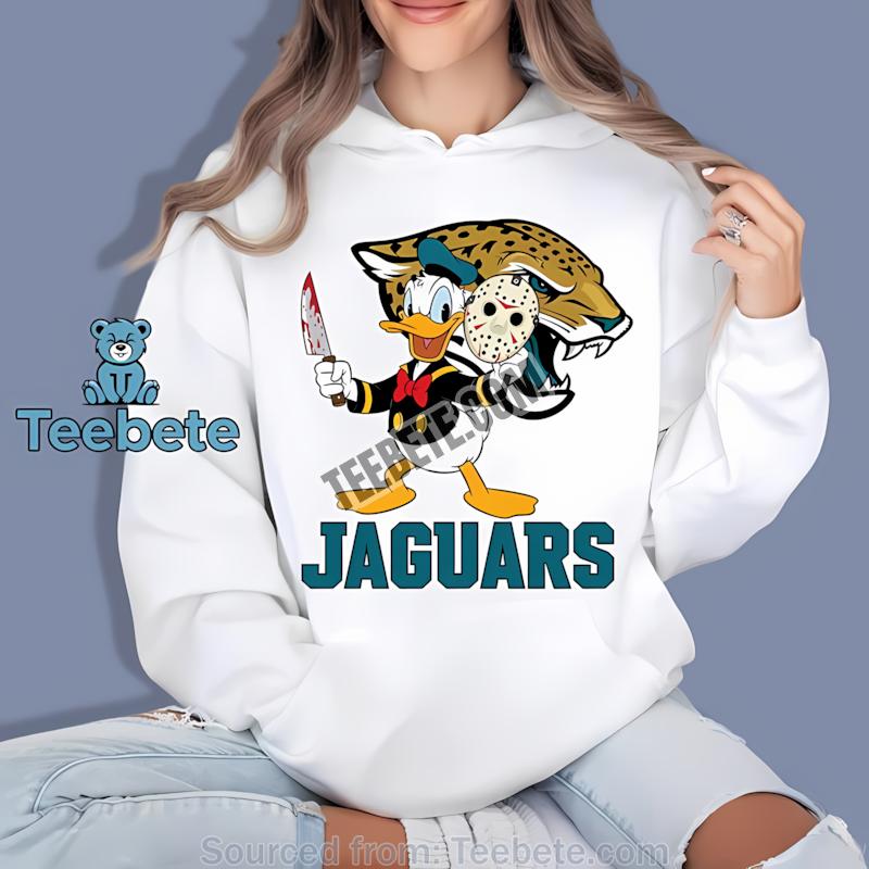 In the heart of the season, when Halloween meets NFL fanfare, a unique blend of joy and spookiness sparks creativity. Immerse yourself in the festive spirit with our Jacksonville Jaguars Donald Duck Jason Mask Halloween Shirt—a piece that captures the playful essence of a classic character while showcasing your unwavering team pride. This design is perfect for every Jacksonville fan ready to celebrate in style, combining nostalgia with contemporary flair.