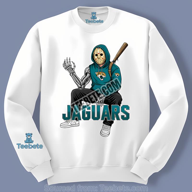 Crafted with the utmost attention to material quality, this shirt is made from soft, breathable fabric that ensures all-day comfort. The vibrant, high-quality print features the iconic Jason Voorhees mask merged with Jaguars imagery, making it a standout piece in any fan’s wardrobe. The clarity of the print means that the design remains eye-catching season after season, ensuring that your love for the Jaguars and Halloween shines brightly, no matter where you go.