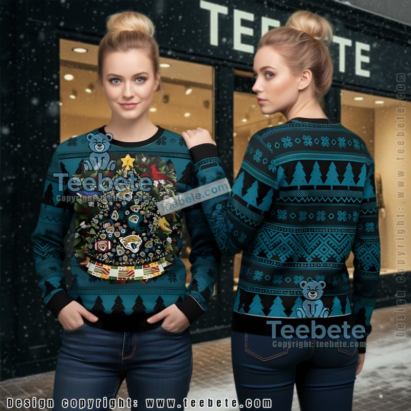 Product information "Jacksonville Jaguars Logo Christmas Tree Ugly Xmas Sweater Blue Womens"