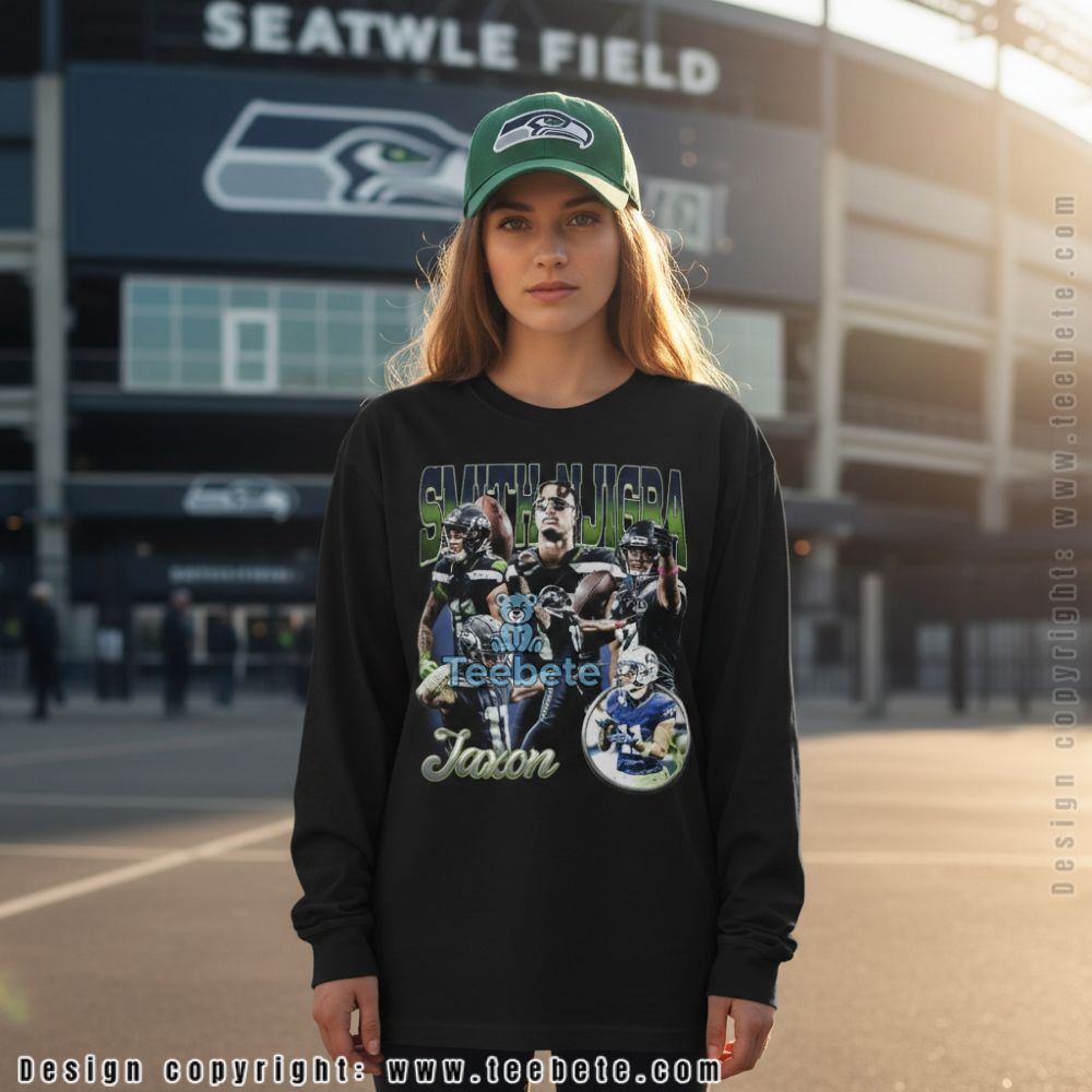 The cotton fabric delivers comfort for all-day wear whether you’re at the stadium or watching from home. This tribute design appeals to fans who want to celebrate one of Seattle’s rising stars with more than basic team gear. The collage format creates visual interest while maintaining a wearable, casual aesthetic.