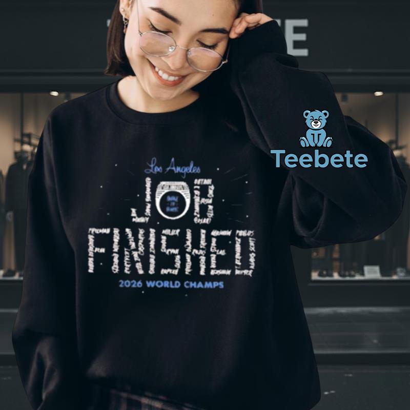 This T-Shirt bursts with visual energy, capturing the essence of the Los Angeles Dodgers’ triumphant 2026 Championship win. A dynamic blend of blue and white creates a striking backdrop, allowing the standout graphic elements to shine. Centered prominently, the bold “2026 Champions” text is complemented by intricate illustrations that embody the spirit of the team, ensuring that the design is both celebratory and engaging. The layered composition allows the elements to interact harmoniously, making this 2026 Champions Los Angeles Dodgers T-Shirt a must-have for any true fan.