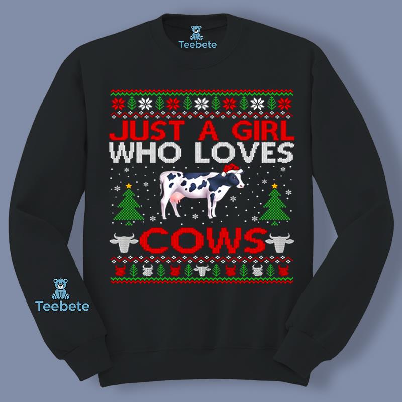 This Just A Girl Who Loves Cows Ugly Christmas Pattern Shirt Graphic isn’t just a shirt; it’s a statement. Inspired by the quirky charm of vintage Christmas cards and the unexpected joy of cow-themed everything, this design is a playful twist on traditional holiday apparel. It’s for those who appreciate the unconventional and celebrate the silly season with a unique style.