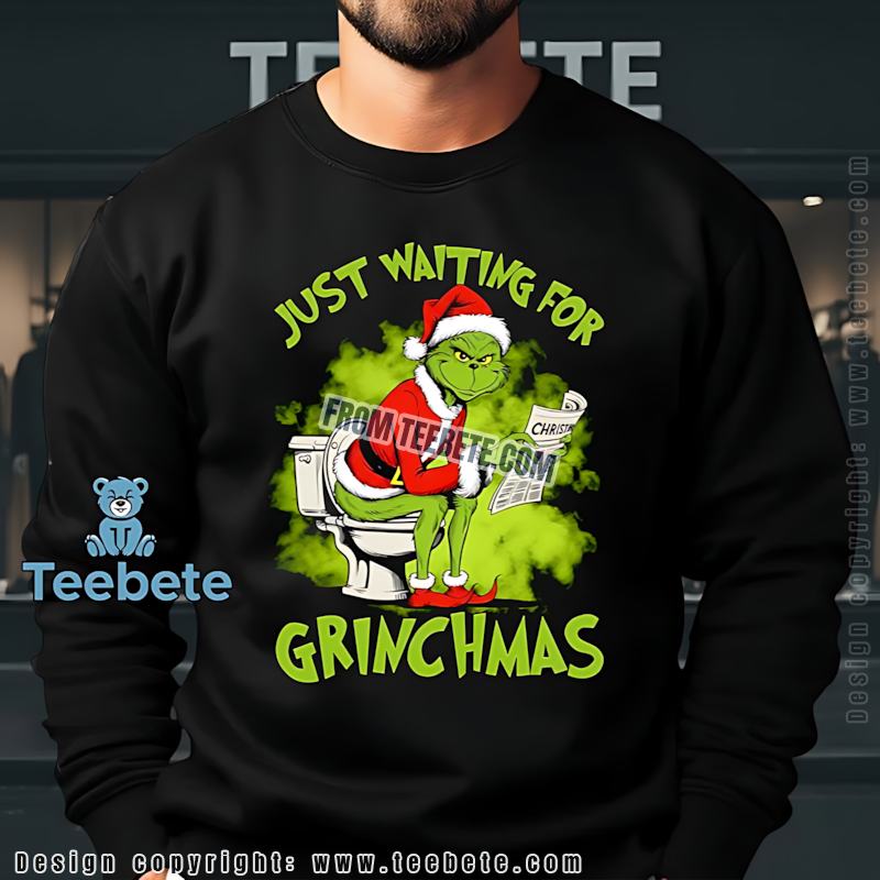 Bring some humor to your holiday season with the Just Waiting For Grinchmas Shirt Grinch On Toilet Funny Christmas design. This cheeky tee embodies the lighthearted spirit we all crave during this festive time. Perfect for those who love a good laugh, this shirt is sure to become a favorite in your wardrobe.