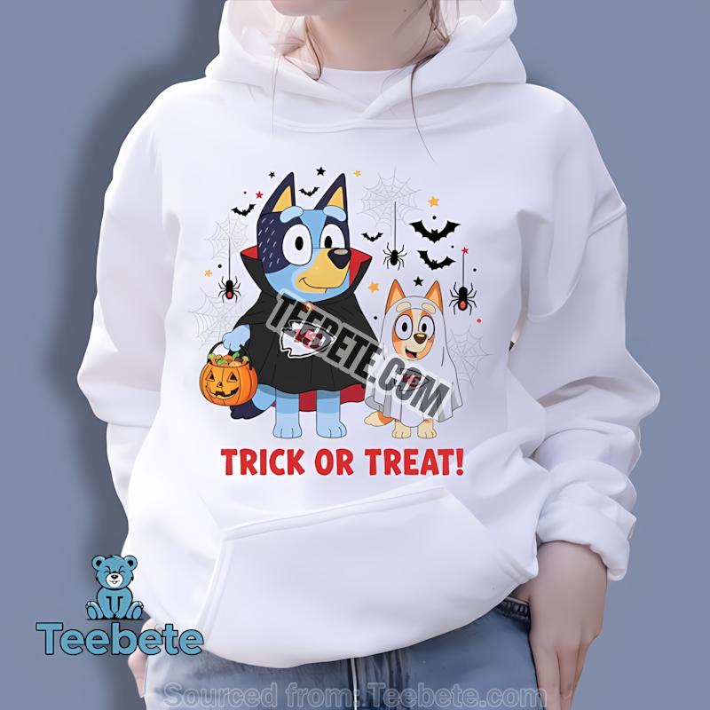 Inspired by the joyous moments shared between families and friends during Halloween, this shirt captures the essence of camaraderie and celebration. Imagine a vibrant neighborhood filled with laughter and excitement as children embark on their trick-or-treat adventures. The Kansas City Chiefs Bluey Bingo Trick Or Treat Halloween Cool Shirt embodies that spirit, merging the thrill of football with the playful charm of Halloween festivities.