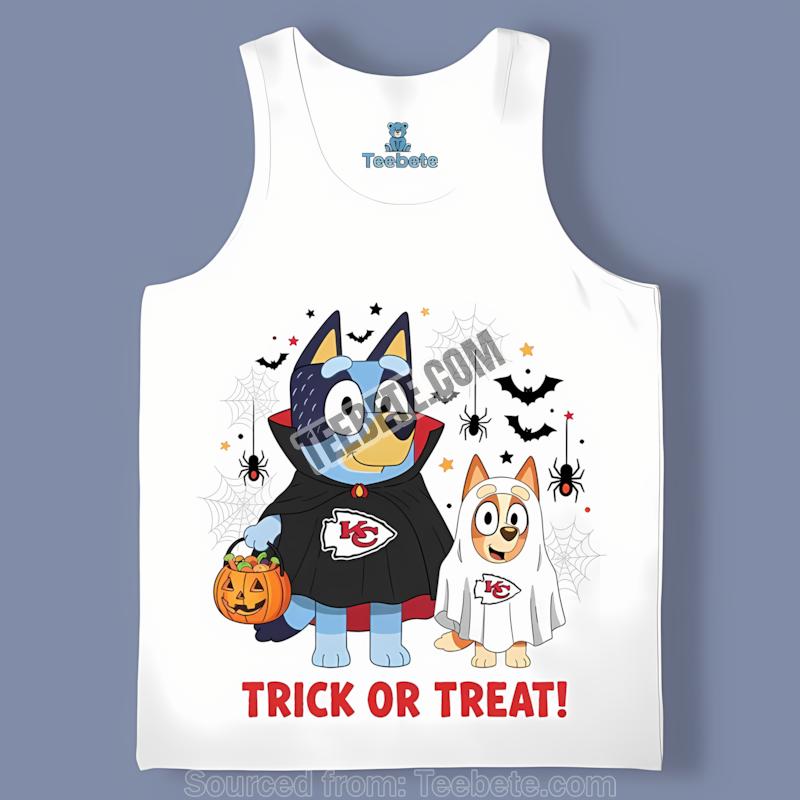 Unleash the Spirit of Halloween with Our Kansas City Chiefs Bluey Bingo Trick Or Treat Halloween Cool Shirt