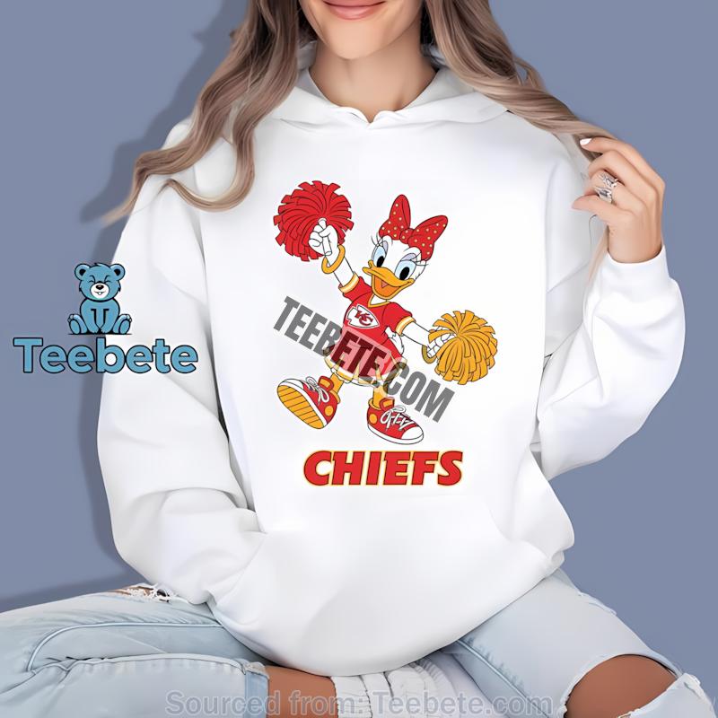 Available now from Teebete, this shirt embodies the essence of Kansas City sports team merchandise that every fan should own. Don’t miss the chance to add this one-of-a-kind graphic tee to your collection. Get the Kansas City Chiefs Daisy Duck Cheerleader Printed Graphic Shirt today and show off your unwavering support!