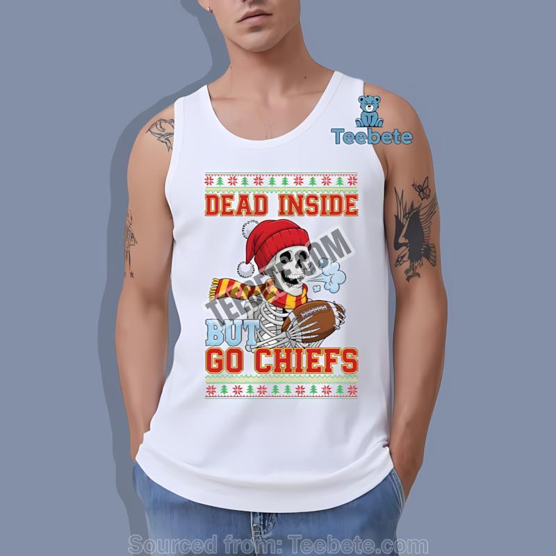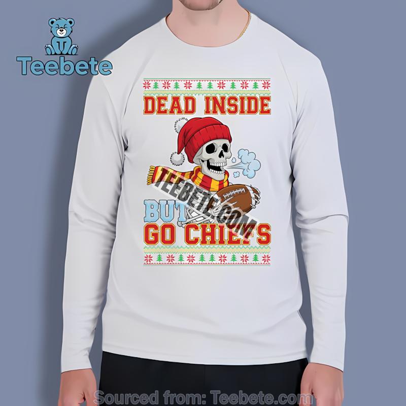 Embrace the laughter and pride of being part of the Chiefs kingdom this holiday season. Don’t miss out on this opportunity to add a piece of unique Christmas humor Chiefs merchandise to your collection. Purchase the Kansas City Chiefs Dead Inside But Go Chiefs Christmas Funny Shirt now and celebrate the holidays in style!