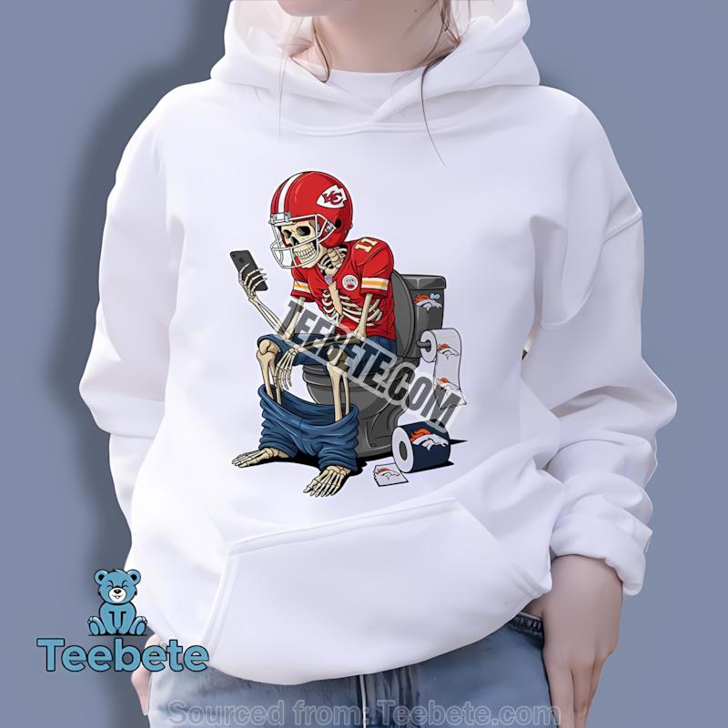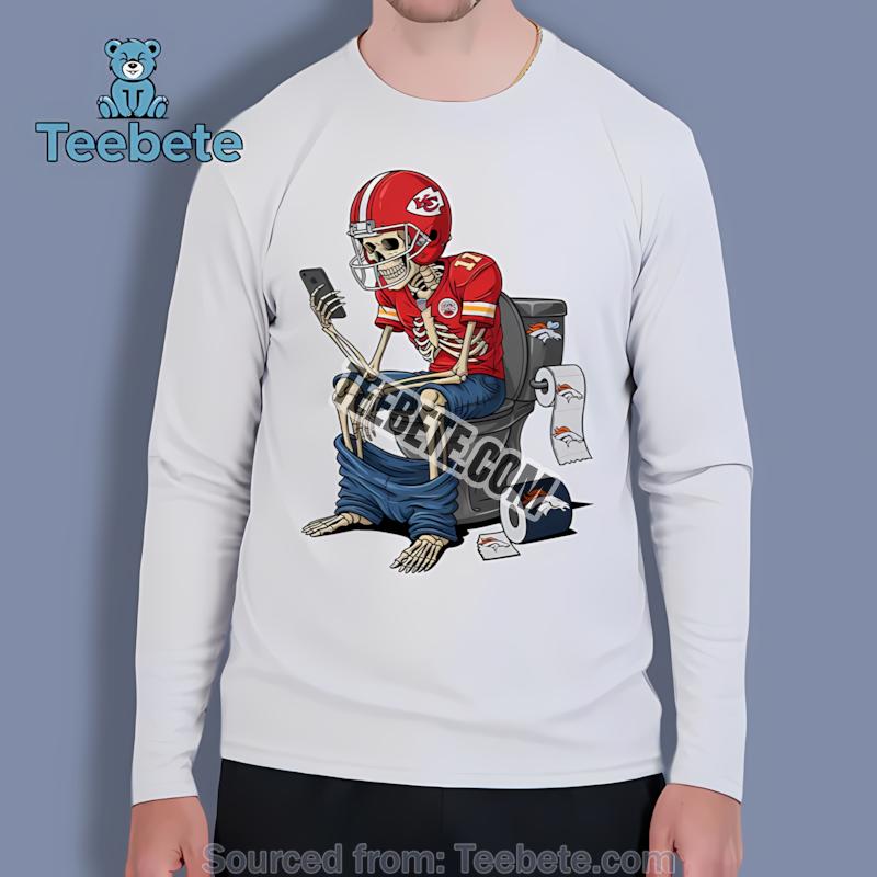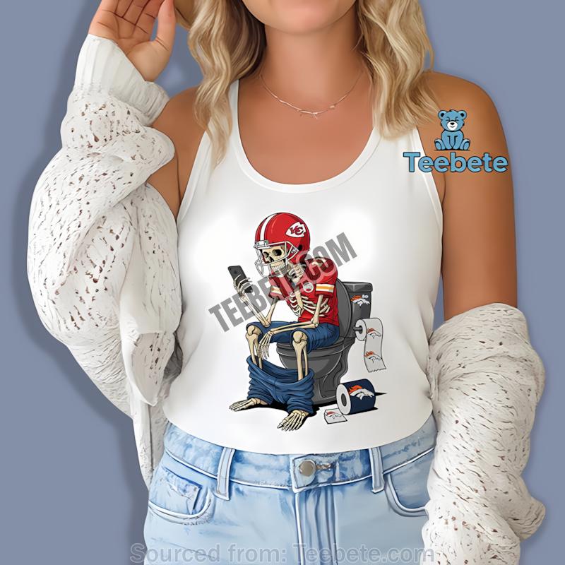 Feel the Rivalry with Our Kansas City Chiefs Skeleton Toilet Vs Denver Broncos Rivalry Design Shirt