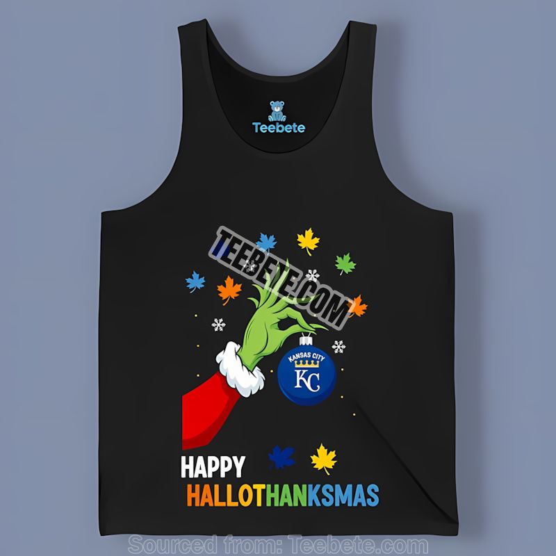 Unleash your team spirit this holiday season with the Kansas City Royals Happy Hallothanksmas Holiday Graphic Shirt! This isn’t just another festive tee; it’s a celebration of baseball passion and holiday cheer, uniquely blended into one unforgettable design.