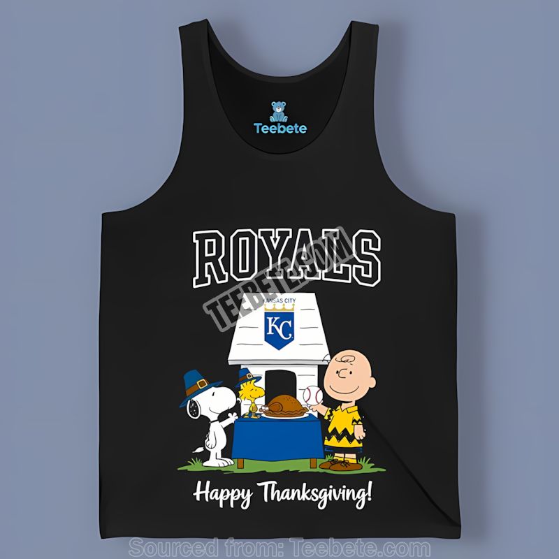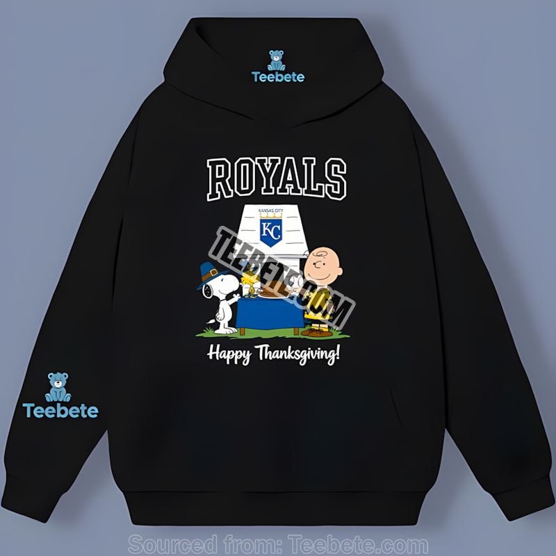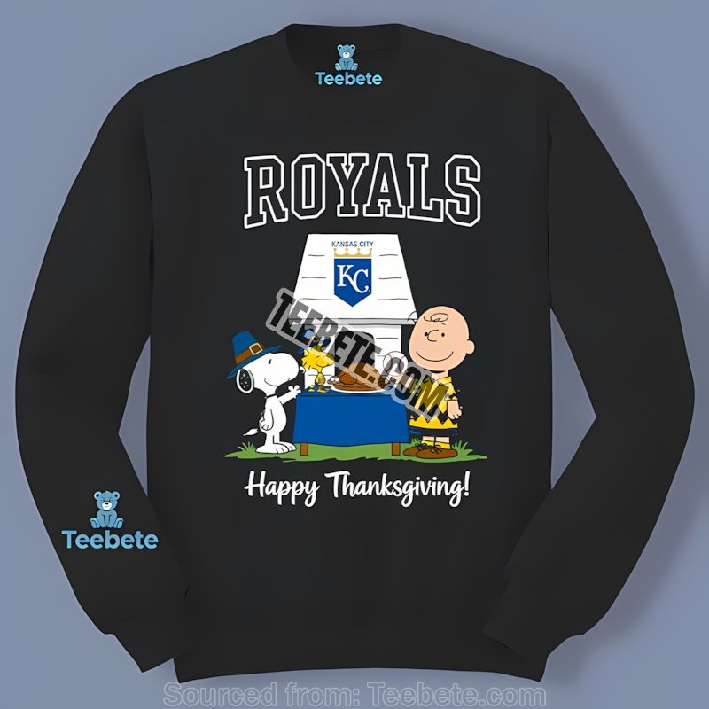 Celebrate the spirit of Thanksgiving with the Kansas City Royals Thanksgiving Snoopy shirt, a uniquely designed Teebete apparel item that perfectly blends your love for baseball and the holiday season. This design is inspired by the heartwarming tradition of family gatherings and the unwavering loyalty of Royals fans. Imagine the cheerful chaos of Thanksgiving dinner, the aroma of roasting turkey filling the air, and the excited chatter of family as they share stories – all while sporting this festive tee.