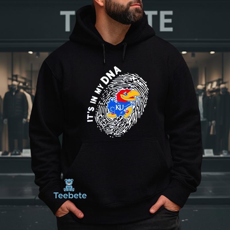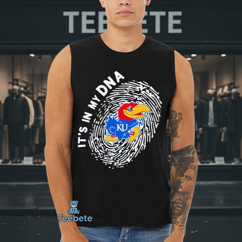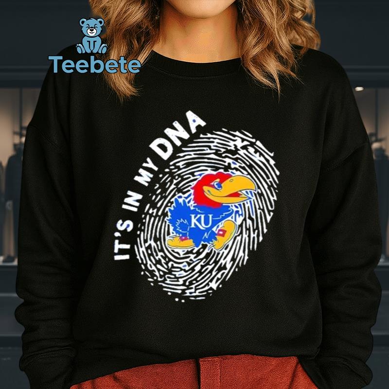 Colorful graphics display a striking blend of team spirit and innovative design on the Kansas Jayhawks DNA Fingerprint Rock Chalk Pride Tee. Featuring a centered composition, its bold layout highlights the iconic Kansas Jayhawks logo intertwined with a creative DNA fingerprint motif. Deep garnet and royal blue hues dominate the color palette, creating a high-contrast look that resonates with fans. Full-coverage print technique brings the vivid artwork to life, ensuring the DNA Fingerprint Kansas Jayhawks T-Shirt stands out on game day or during casual outings.