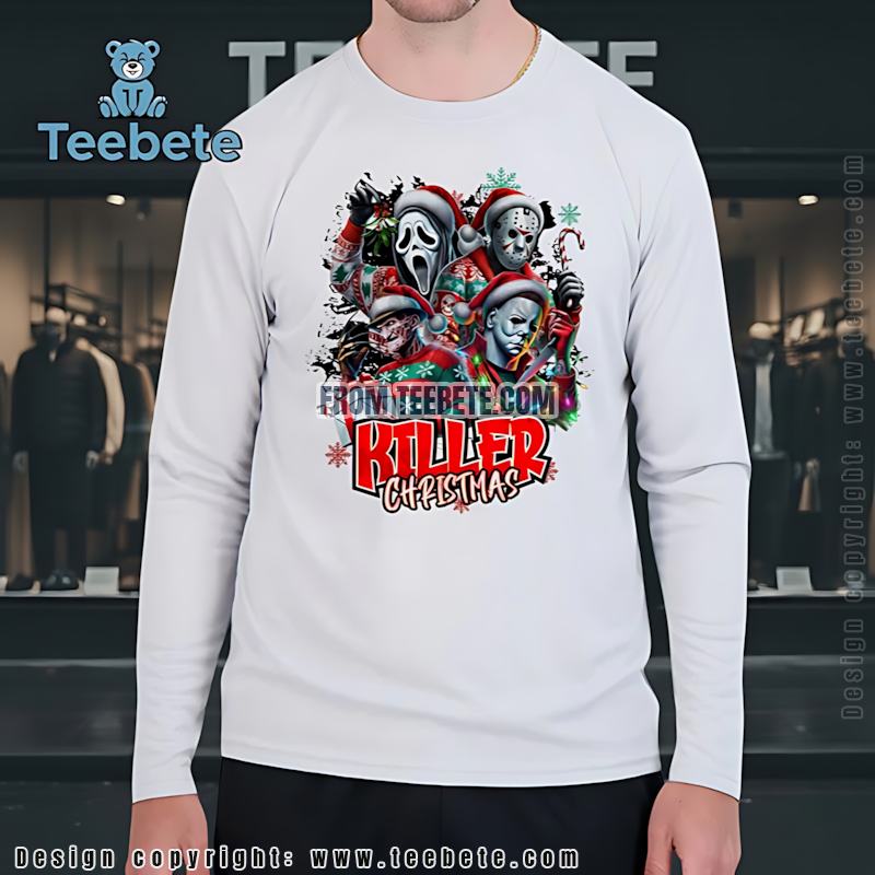 Unleash your inner horror fan with the Killer Christmas Shirt Freddy Jason Michael Ghostface. This unique design celebrates the iconic figures of slasher cinema, blending nostalgic charm with holiday spirit. Perfect for those who love to showcase their passion for classic horror, this shirt embodies the fun and festive fusion of Christmas and cult classics.