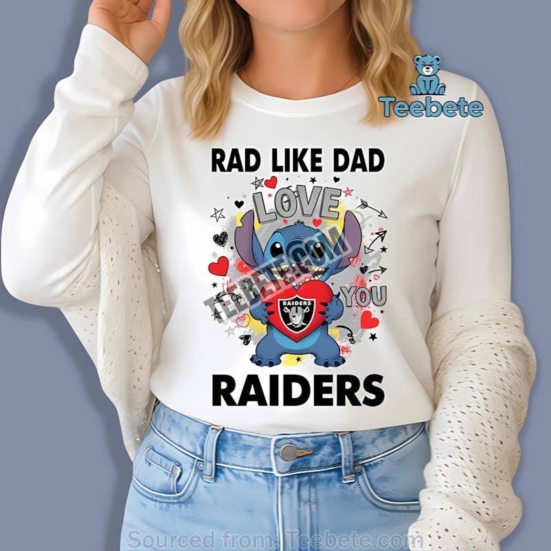 Elevate your game day style with the Las Vegas Raiders Stitch Rad Like Dad Trendy Shirt, a piece that embodies the spirit of fandom and the bonds shared between fathers and their children. Every stitch weaves a story of loyalty and camaraderie, perfect for hardworking dads who pass down their love for the Raiders.