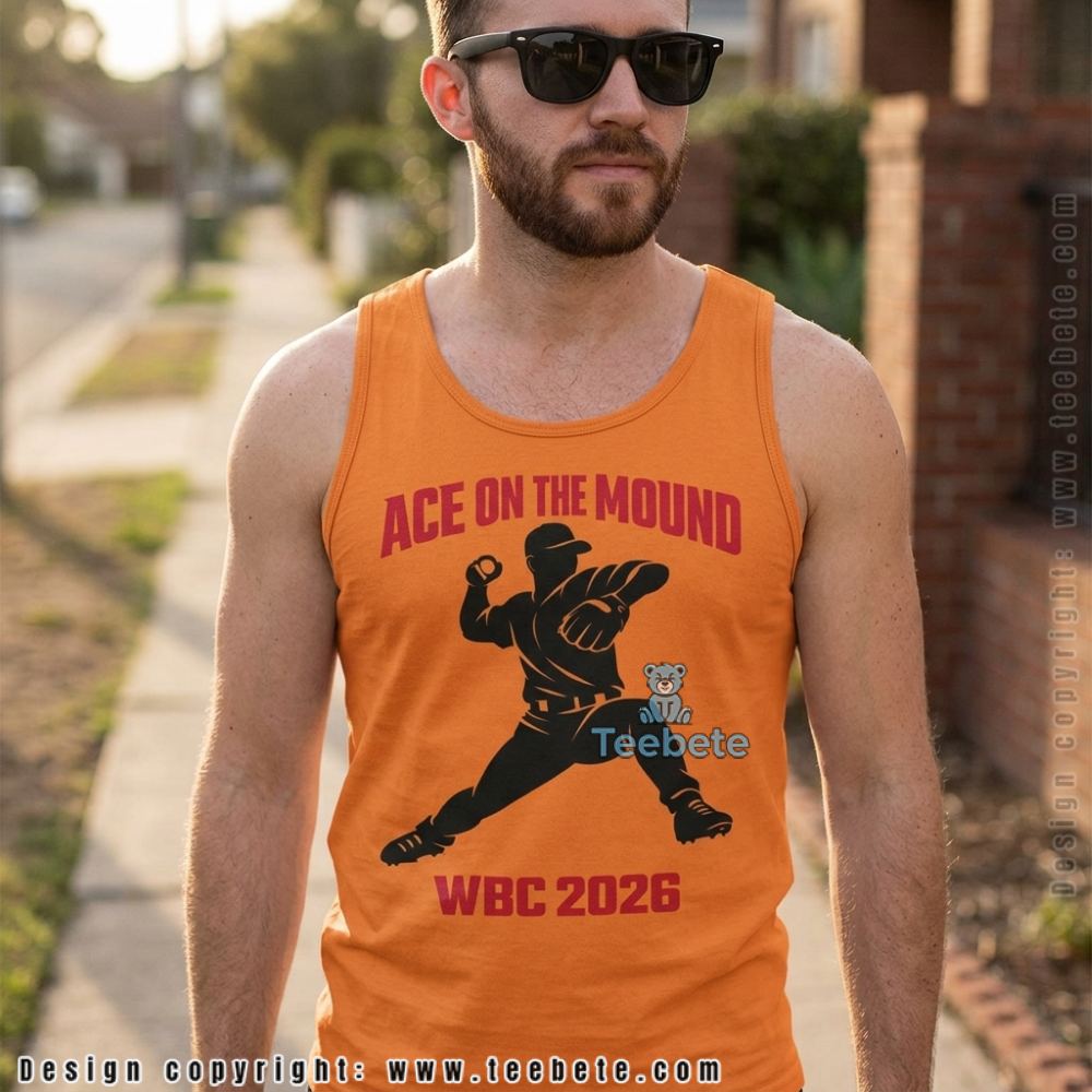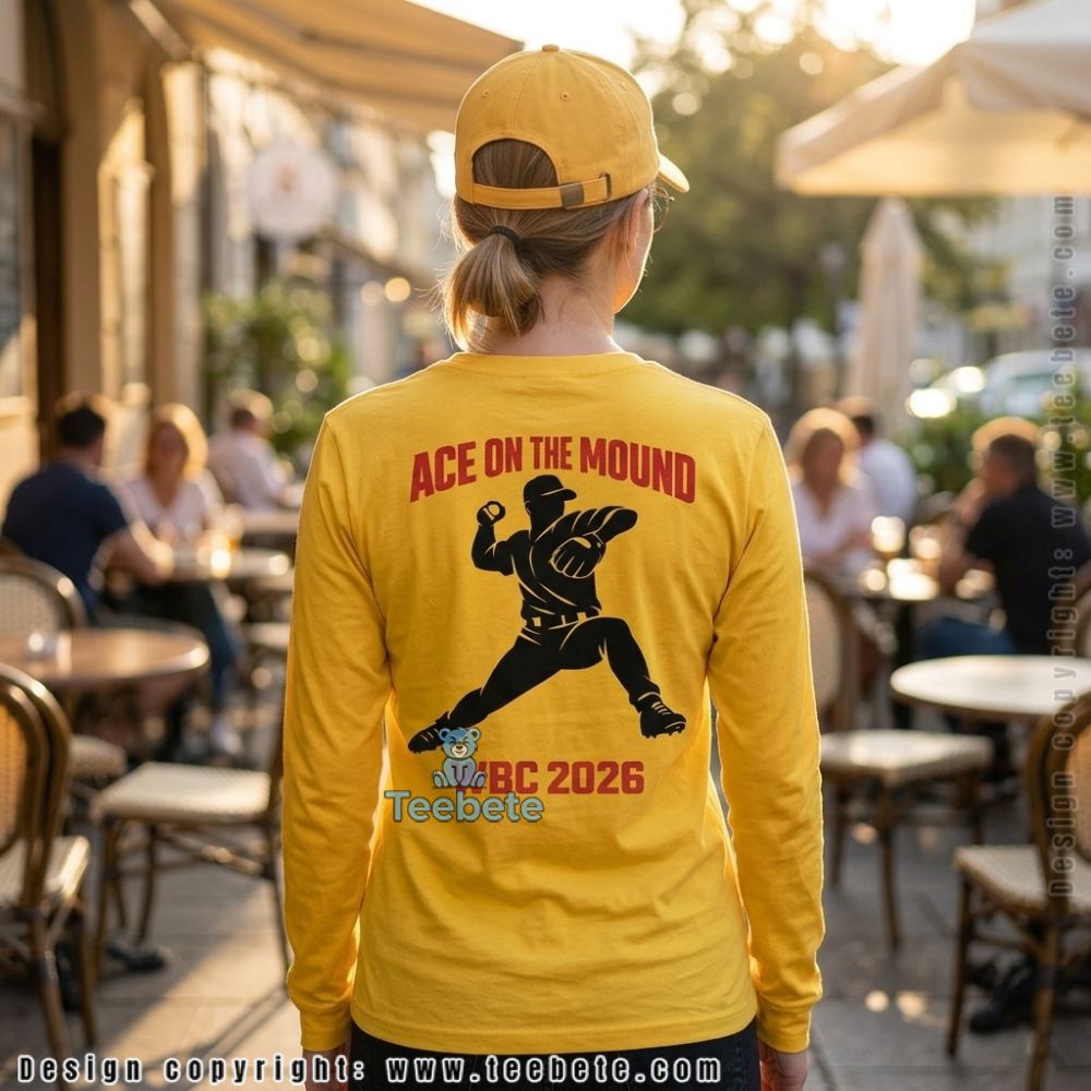 The Logan Webb Pitcher Shirt WBC 2026 Baseball Fan features a dynamic layout grounded in a striking navy background, where bold graphics celebrate the spirit of baseball. The design prominently displays illustrations of baseballs and bats, interwoven with patriotic elements that emphasize the World Baseball Classic theme. Vivid reds and whites punctuate the navy base, creating a sense of movement across the shirt while maintaining a balanced visual flow. The graphic density is concentrated around the chest and shoulders, gradually lessening toward the hem, facilitating a focal point that draws the eye while preserving open space for comfort.