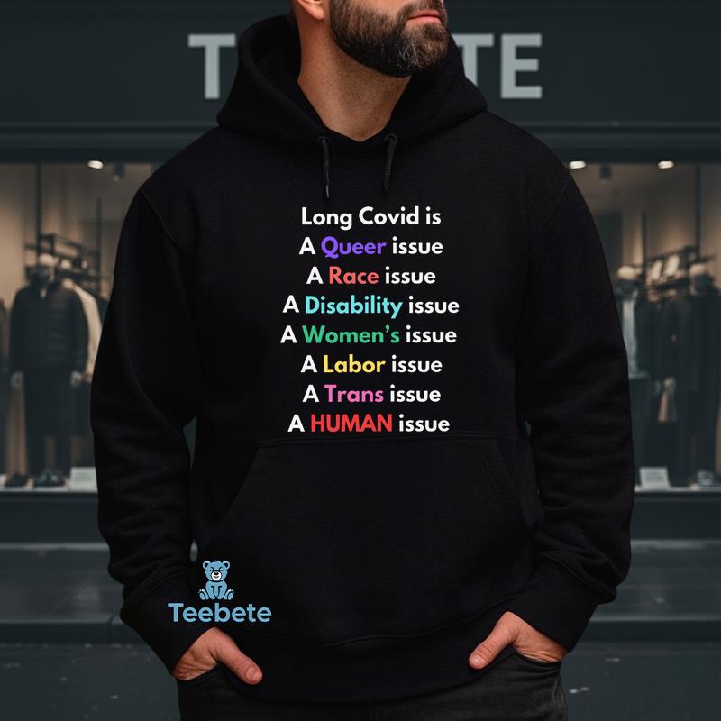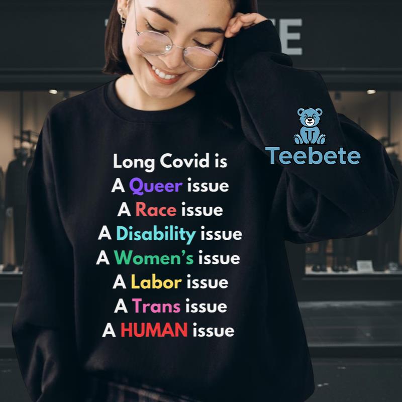 A striking composition greets the eye on this shirt, where the intricate design pays homage to both Long Covid and Queer Race Disability Awareness. Artfully arranged graphics meld vibrant colors with thoughtful typography, capturing the essence of inclusivity and resilience. The centerpiece of the design is a layered collage featuring symbolic motifs that resonate with awareness campaigns, ensuring the “Queer Race Disability Awareness Long Covid Shirt” stands out in any setting. The full-coverage print technique creates a seamless flow of imagery, allowing the message to be shared effortlessly.