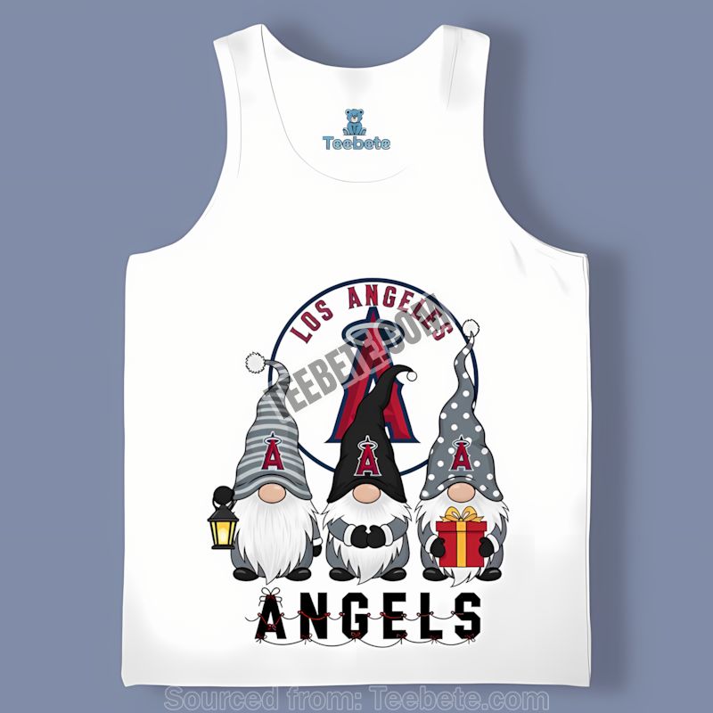 Ready to add a touch of festive Angels spirit to your wardrobe? Grab your Los Angeles Angels Christmas Gnomes Shirt In Retro Holiday Style from Teebete today!