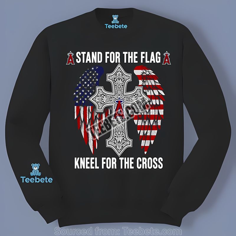 Don’t miss out on this opportunity to own a piece of meaningful apparel that combines your love for baseball, your faith, and your patriotism. Order your Los Angeles Angels Stand For Flag Kneel For Cross Shirt Color Patriotic from Teebete today!