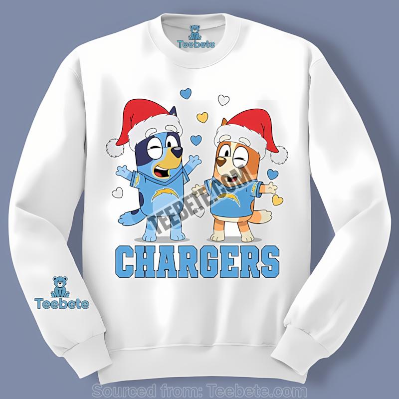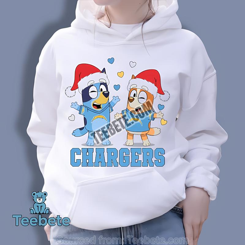 Available in a variety of styles, including cozy sweatshirts, trendy hoodies, and classic V-necks for both men and women, you’ll find the perfect fit for all occasions. The Chargers Bluey and Bingo tee is an excellent addition to your NFL holiday apparel collection, merging team pride with playful nostalgia. Imagine gifting this versatile piece to family and friends—ideal for holiday parties or as a unique Christmas gift idea for the Chargers fan in your life. It’s a perfect blend of favorite characters and team spirit that everyone will appreciate.