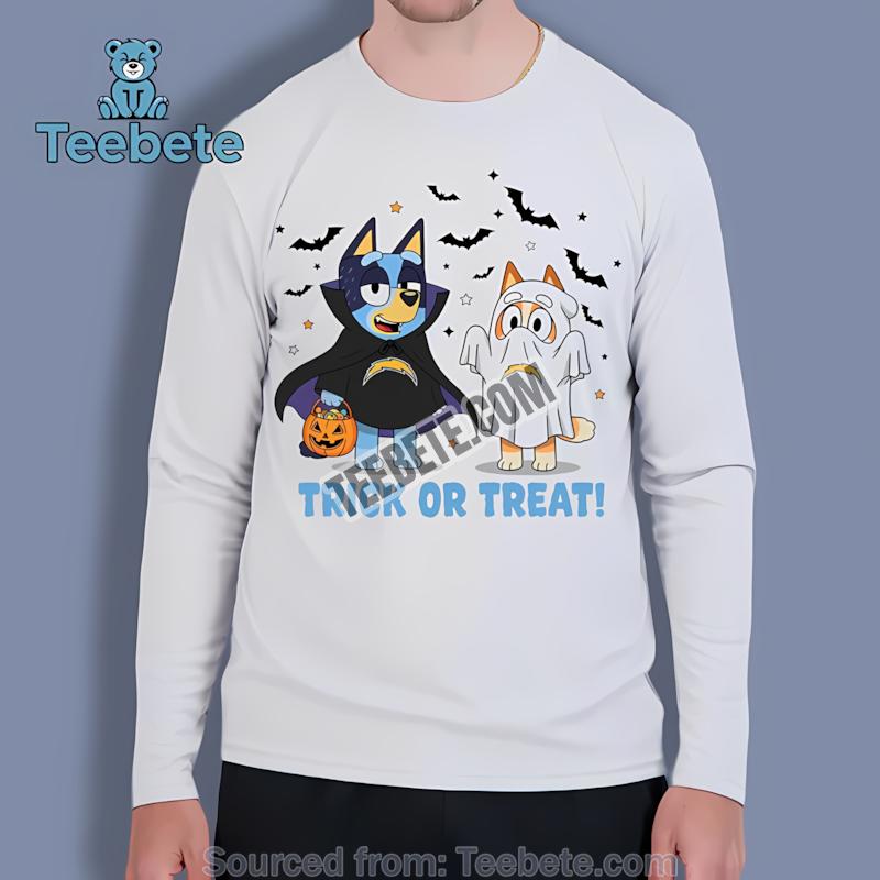Unleash the Spirit of the Season with Our Los Angeles Chargers Bluey Bingo Trick Or Treat Halloween Color Shirt