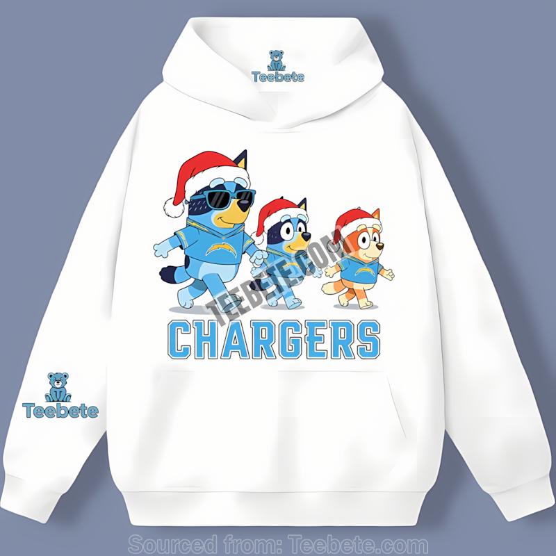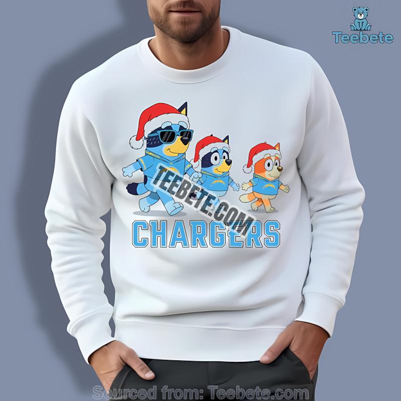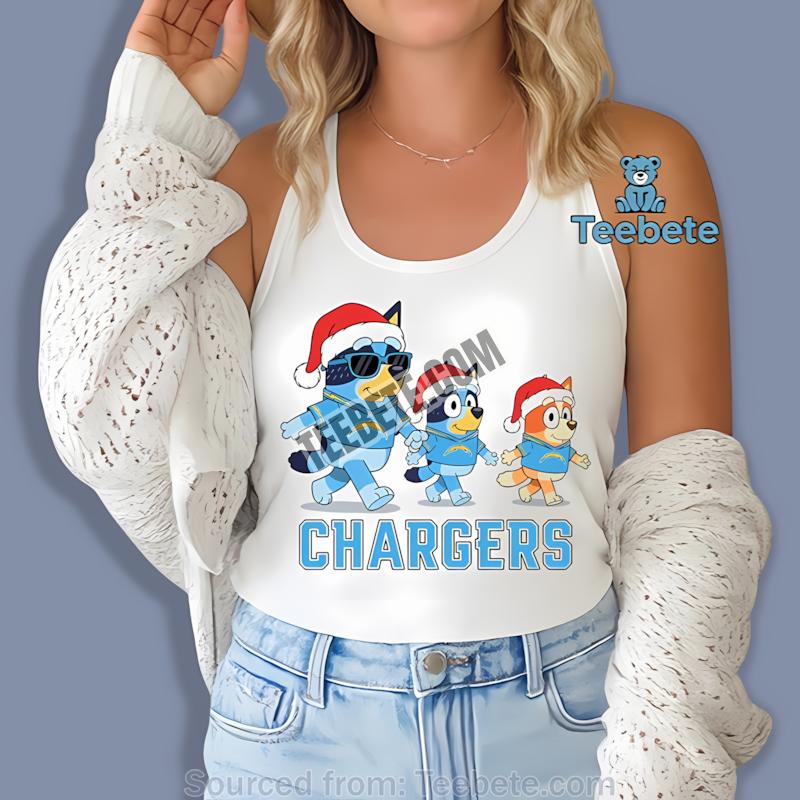 Adorned with a playful design that showcases Bluey in a Chargers Santa hat, this Los Angeles Chargers Christmas shirt is not just another seasonal tee—it’s a heartfelt statement. Every detail has been crafted to evoke warm memories of family traditions and joyful celebrations, allowing you to stand out during holiday parades and gatherings. Imagine wearing this tee while decorating the tree or participating in a festive family outing—it’s a connection, a story, and a celebration rolled into one.