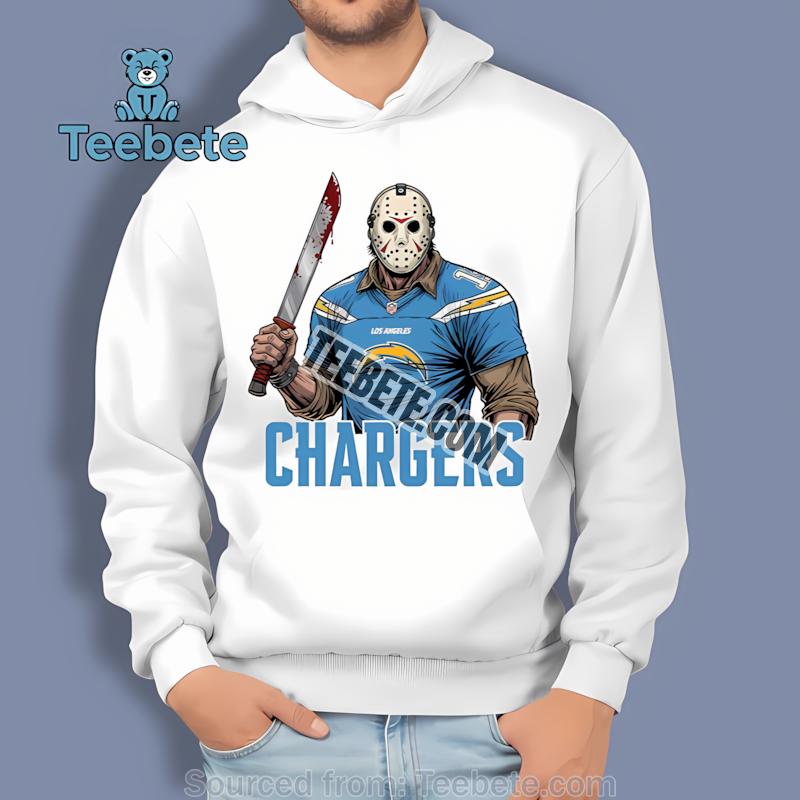 Crafted by Teebete, this eye-catching shirt is the ultimate blend of eerie and exciting, making it a must-have for fans and horror aficionados alike. Don’t miss out on the chance to own a piece of this thrilling crossover—add the Los Angeles Chargers Jason Voorhees Machete Horror Football Shirt to your cart today and transform your game day experience!