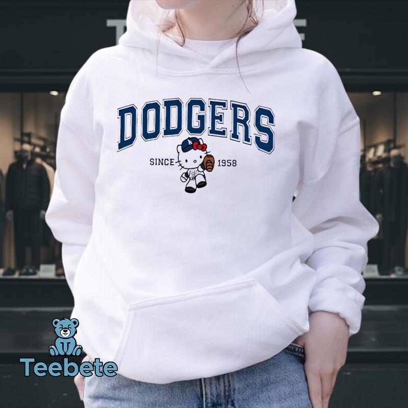 Infused with a fun, playful energy, this T-Shirt celebrates fandom with a dash of charm. The overall aesthetic leans into a lighthearted vibe, perfect for game day gatherings or casual outings with friends. Elements like the classic Dodgers logo intertwine with Hello Kitty’s signature style, setting it apart from typical sports apparel. Whether worn during tailgate parties or while cheering from the stands, this unique design brings a festive touch to any fan’s wardrobe, making it an ideal choice for fans of all ages eager to express their loyalty to both teams.
