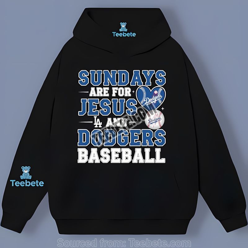 Don’t miss out on the opportunity to own this exceptional piece of wearable art. Order your Los Angeles Dodgers Sundays Jesus And Baseball Unisex Shirt from Teebete today and experience the perfect blend of faith, baseball, and style!