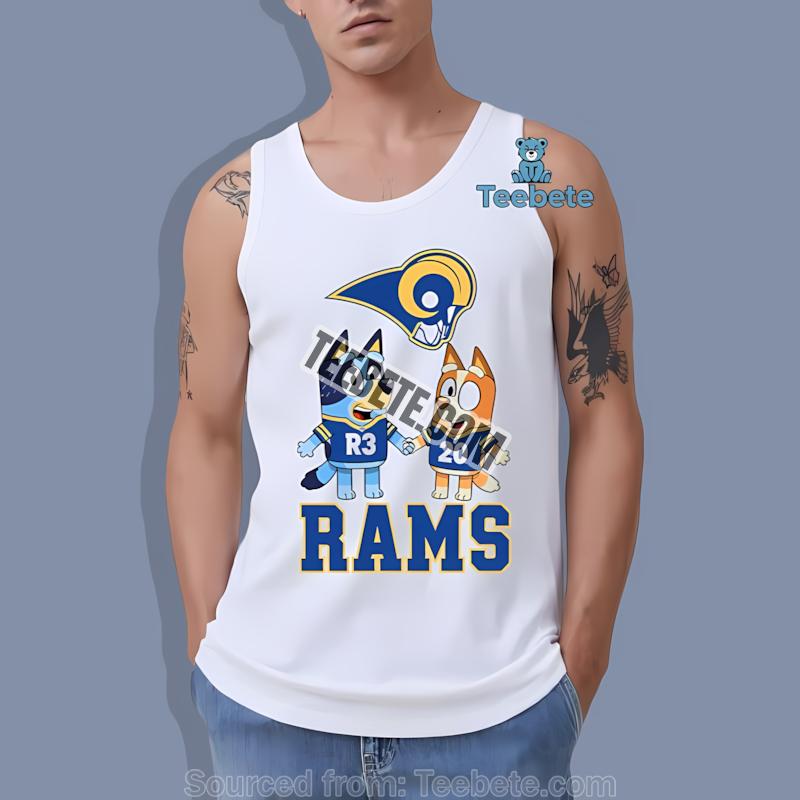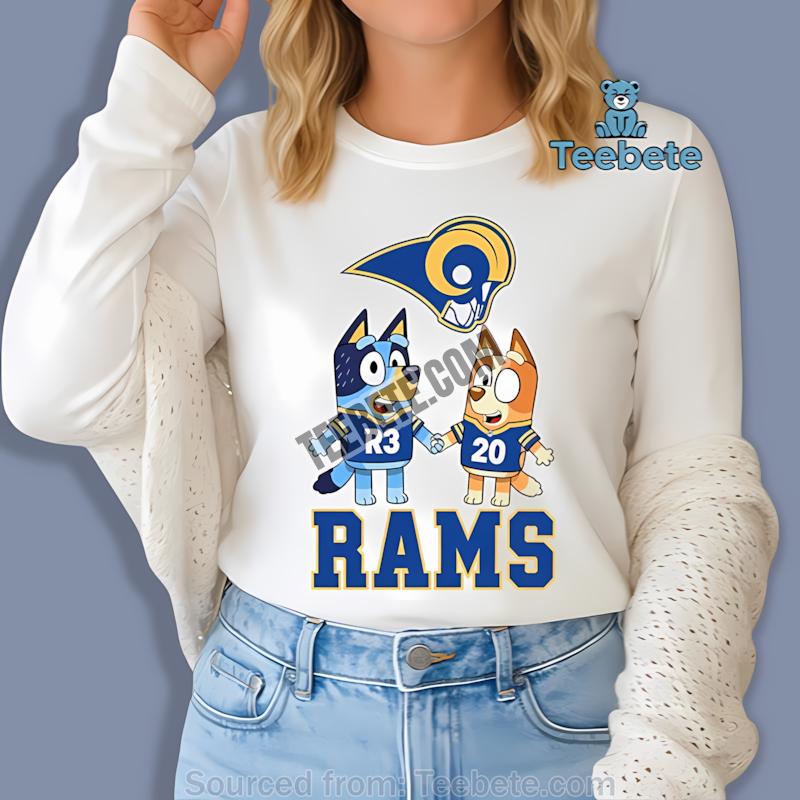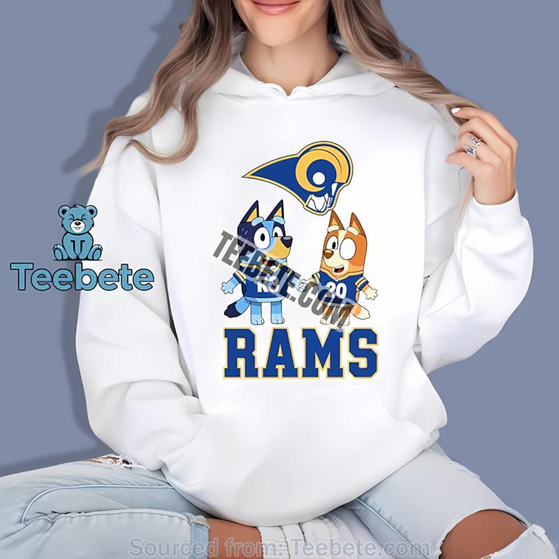 Embrace the charm of Rams Bluey Bingo collectible merchandise and let your outfit tell a story of loyalty and fun. This shirt is an essential part of any Rams fan’s collection and a perfect gift for those who appreciate the blend of nostalgia with contemporary flair.