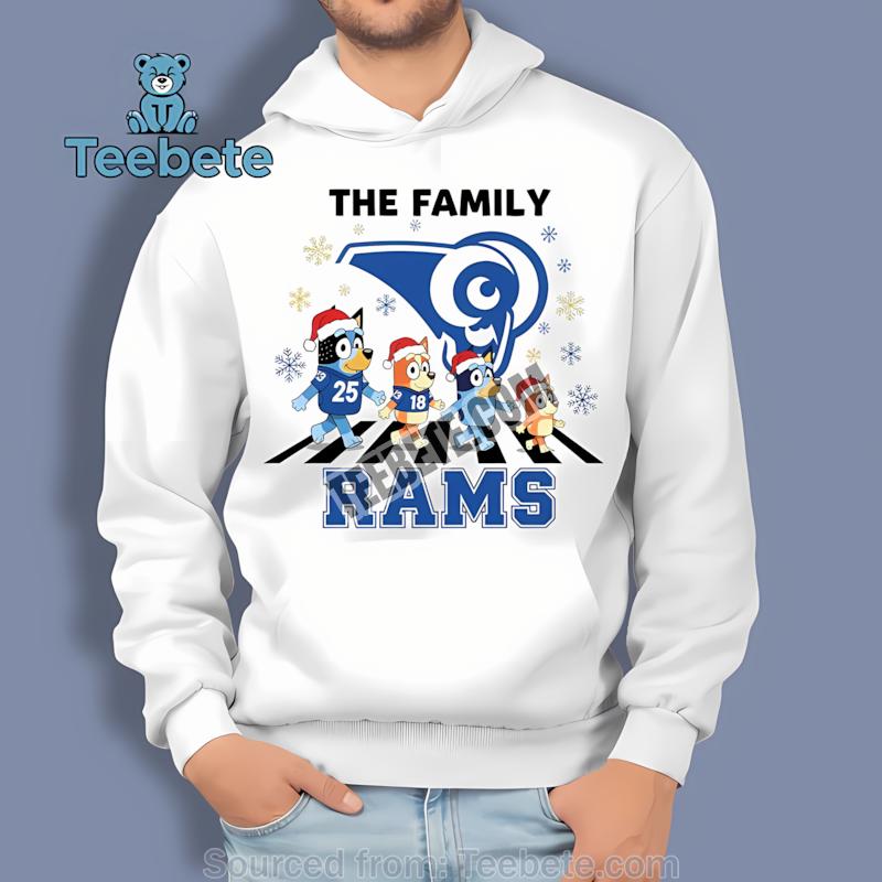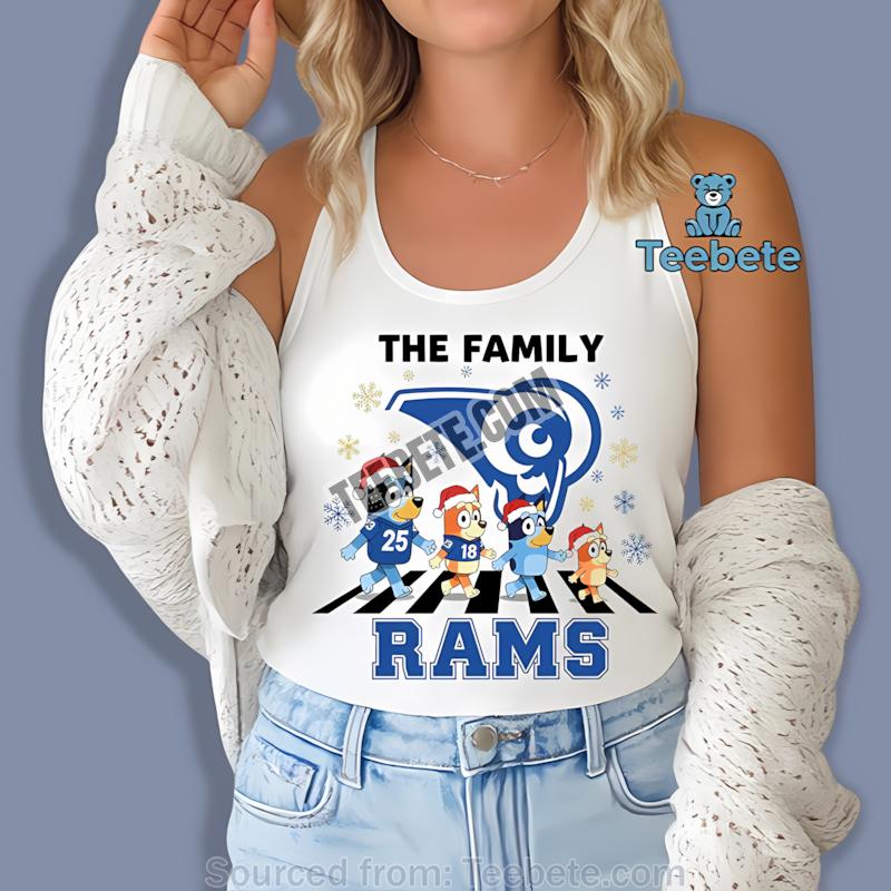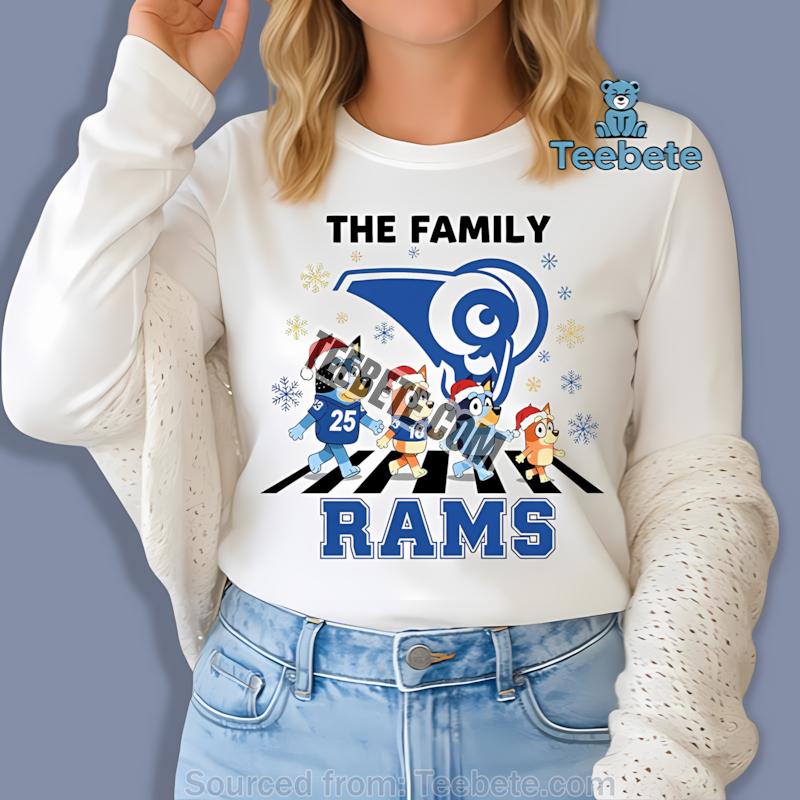 The print quality on this Bluey family Rams gear is top-notch, using advanced techniques to ensure durability and vibrancy. You won’t have to worry about fading, allowing you to wear this Rams holiday snowflake apparel through countless festive seasons. It’s not just clothing; it’s a piece of memorabilia that captures memories.
