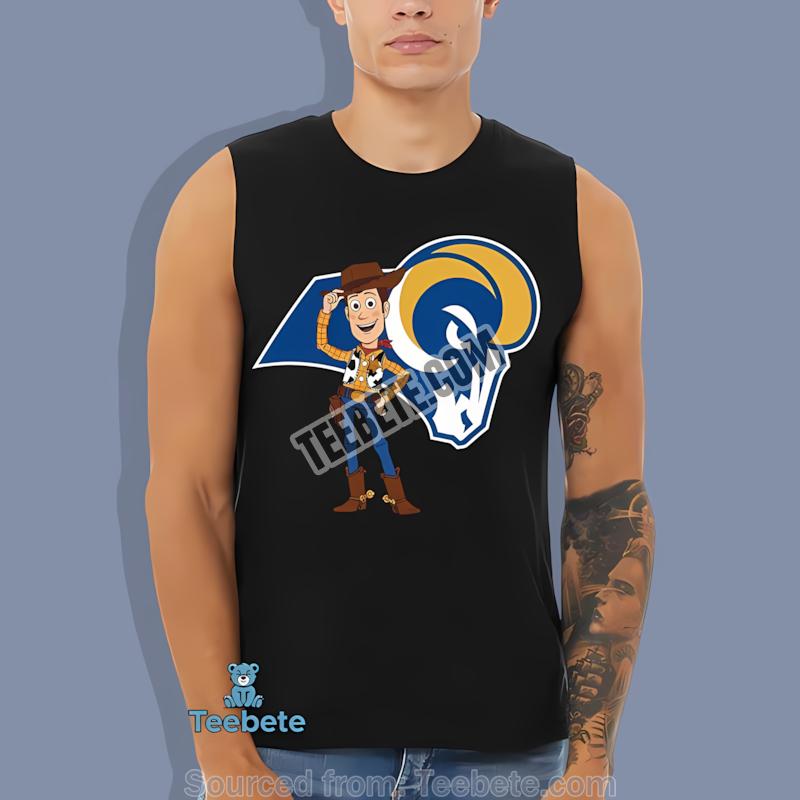 Unleash your inner child and team spirit with the Los Angeles Rams Woody Toy Story Cartoon Shirt. This unique design combines the beloved Pixar character Woody with the iconic colors and logo of the Los Angeles Rams, making it the perfect homage for fans who appreciate the heartwarming tales of friendship and adventure that both the Rams and Toy Story represent.
