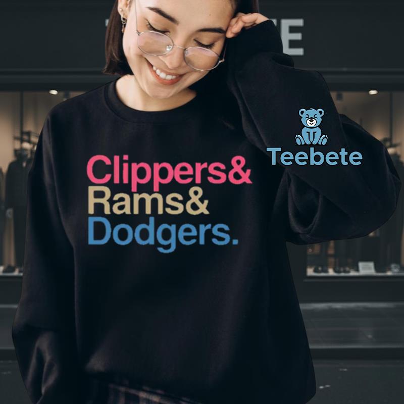 Vintage sports aesthetics come alive through this T-shirt’s design, establishing a nostalgic yet energetic atmosphere that resonates with fans. Each team’s emblem is thoughtfully positioned to represent the unity of Los Angeles sports culture, making it perfect for game day gatherings, casual meet-ups, or everyday wear. The casual and enthusiastic vibe of the Dodgers Rams Clippers Los Angeles Sports Teams T-Shirt is sure to grab attention and showcase loyalty to the city’s beloved teams, while the distinct graphic energy elevates this apparel beyond standard fan gear.