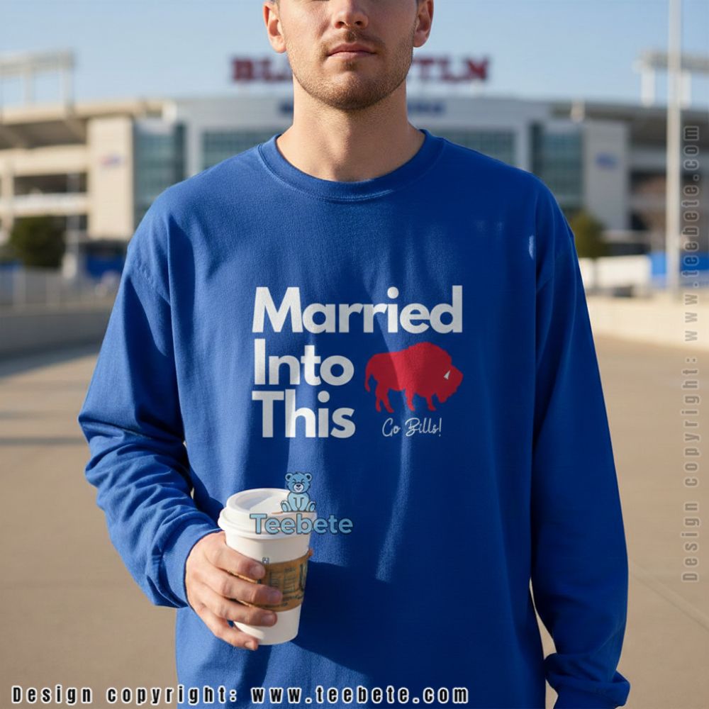 Ideal for fans of sports, this Married Into This Buffalo Go Bills Shirt features a captivating arrangement of graphics that incorporates team colors and imagery, delivering a striking visual appeal. The shirt showcases bold, eye-catching text, harmoniously melded with thematic symbols that celebrate Buffalo pride. Utilizing a full-coverage printing technique, the design captures every detail vividly. The contrast between the deep hues and bright accents enhances the overall aesthetic, making it stand out on casual outings or game days.