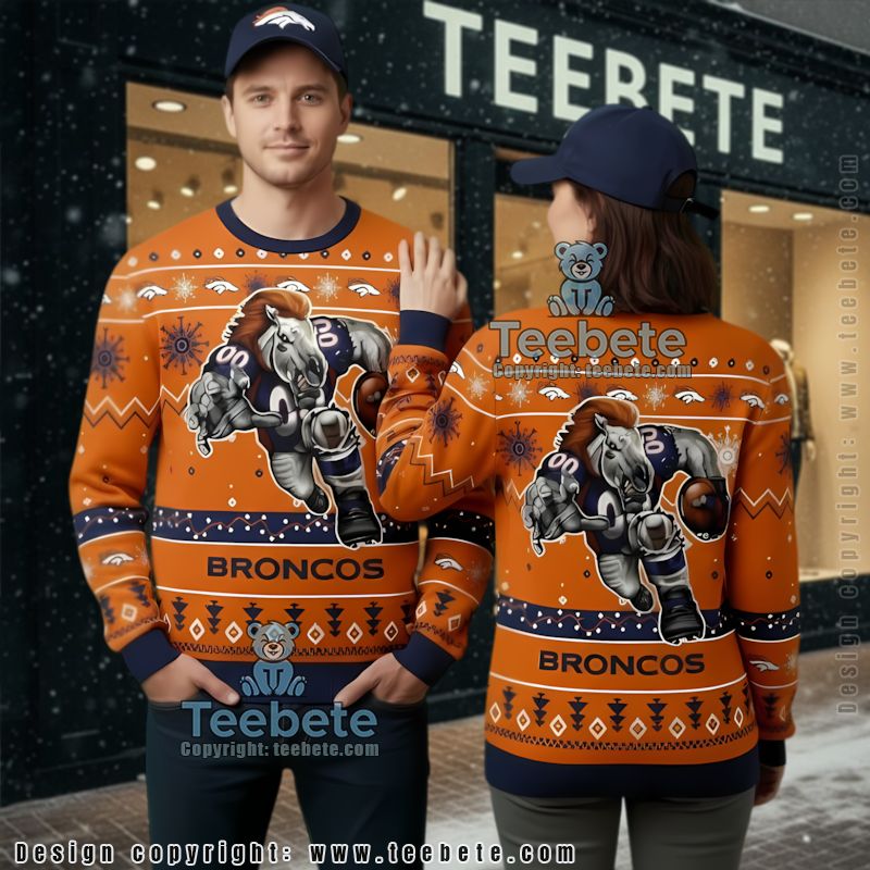 Get ready to showcase your holiday spirit with the vibrant Denver Broncos mascot ugly Christmas sweater. This unique design embodies the cheer, fun, and camaraderie of football season during the festive winter months. Whether at a family gathering or a game day party, it makes a bold statement that combines love for the team with a cheerful holiday twist.