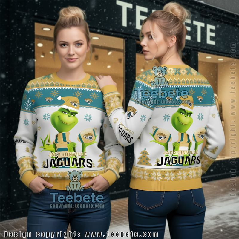 Product information "Jacksonville Jaguars Merry Christmas Grinch Ugly Christmas Sweater Yellow Cheap"