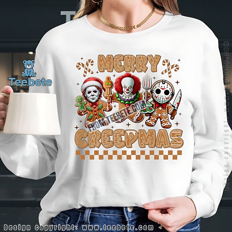 Get ready to embrace the season with the Merry Creepmas Gingerbread Slasher Shirt, a unique mashup of festive cheer and horror fandom. This shirt celebrates iconic characters like Michael Myers, Pennywise, and Jason Voorhees, making it the perfect addition to any horror lover’s wardrobe. Stand out at holiday parties with this delightful yet spooky fashion statement.
