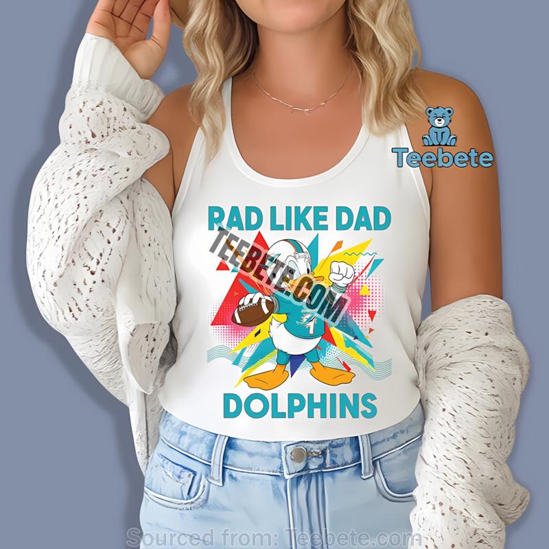 Dive into team spirit and order your Miami Dolphins Donald Duck Rad Like Dad Shirt now from Teebete!
