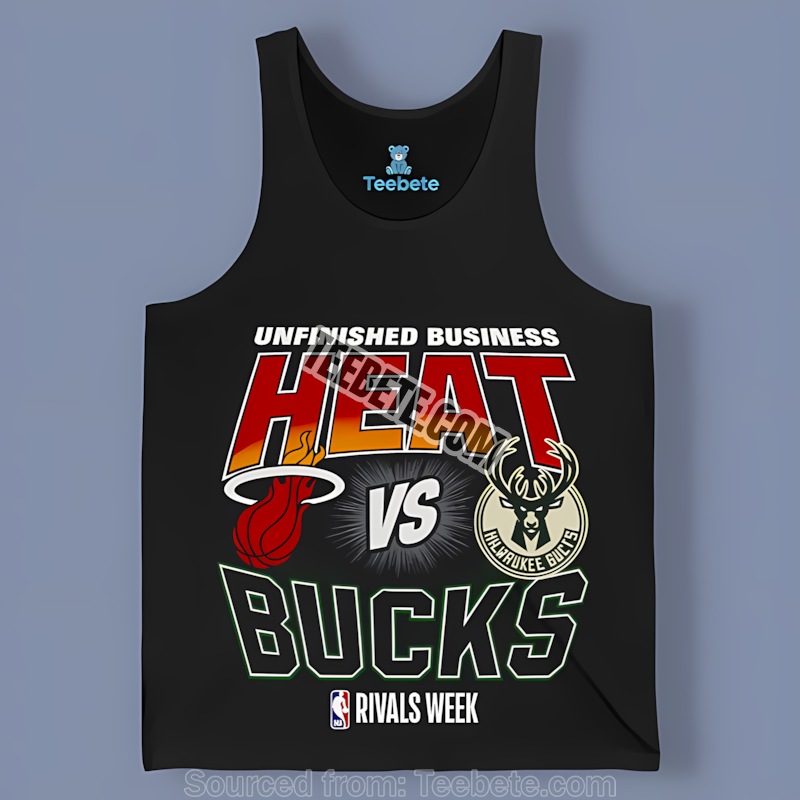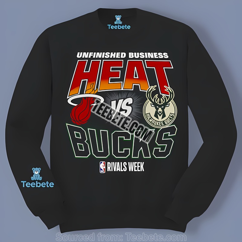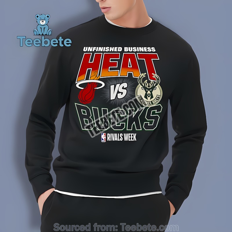 Show your unwavering loyalty with this Miami Heat Vs Milwaukee Bucks Unfinished Business Rivals Week Retro Shirt 2025. Inspired by the intense rivalry between these two basketball powerhouses, this Teebete design captures the electrifying energy of their epic clashes. Remember the nail-biting finishes and unforgettable moments? This shirt embodies that same spirit of competition.