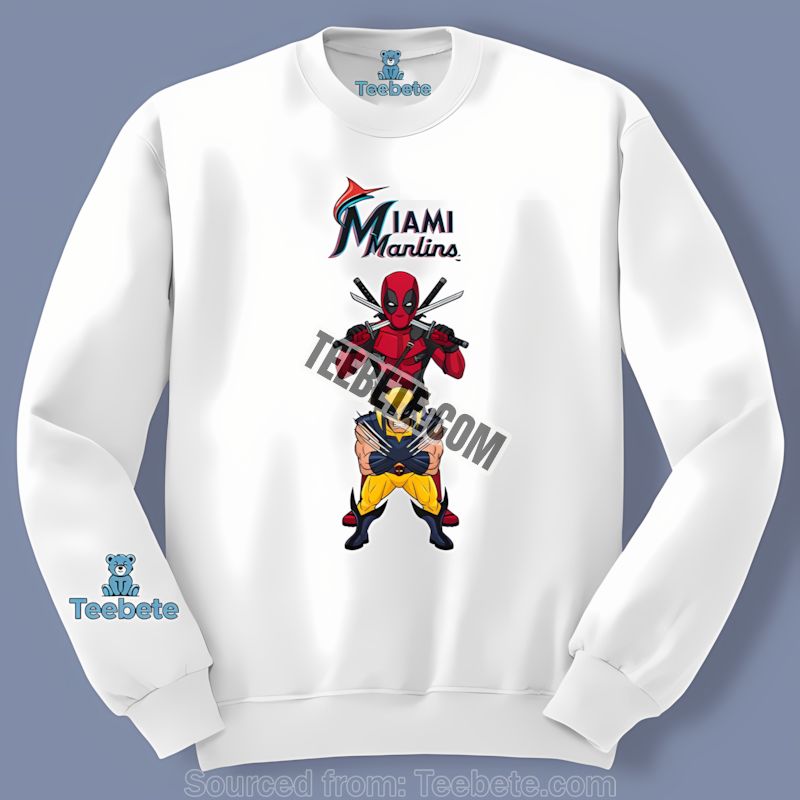 Show your unwavering support with style and comfort. This shirt is available in a range of sizes to ensure the perfect fit for every fan. Don’t miss out on owning a piece of unique fandom history. Order your Miami Marlins Deadpool Wolverine Crossover Regular Shirt from Teebete today!