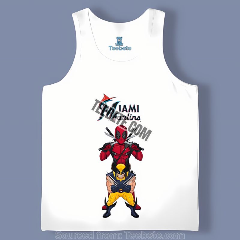 Express your love for the Miami Marlins and the Marvel universe with this one-of-a-kind design. This piece of Miami Marlins fan graphic apparel will turn heads wherever you go. The meticulously designed graphic combines the iconic Marlins logo with the instantly recognizable imagery of Deadpool and Wolverine, creating a truly unforgettable statement piece.