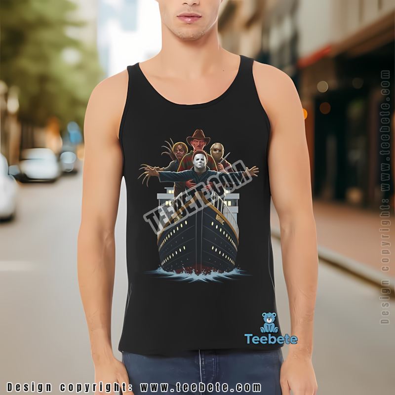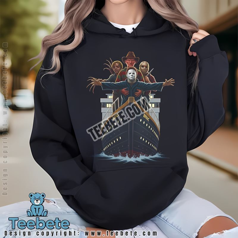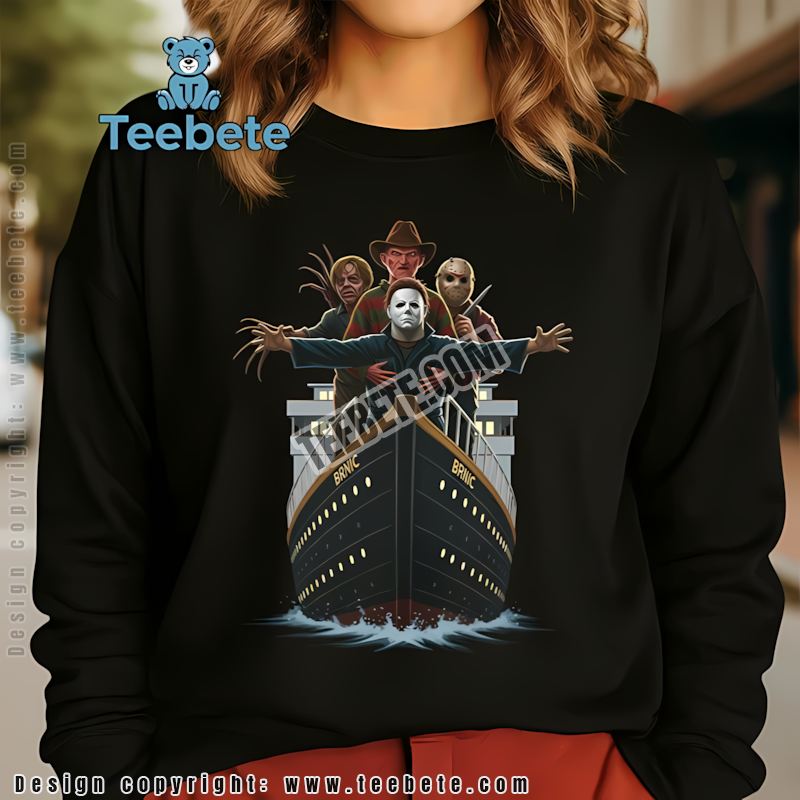 Embrace the spine-chilling fun of Halloween with our Michael Myers Jason Freddy Krueger Titanic Parody Halloween Shirt! This unique design cleverly intertwines iconic horror characters with a nod to classic film moments, creating a piece that’s not only stylish but deeply rooted in pop culture. Whether you’re heading to a haunted house or a Halloween party, this shirt will spark conversations and evoke nostalgia.