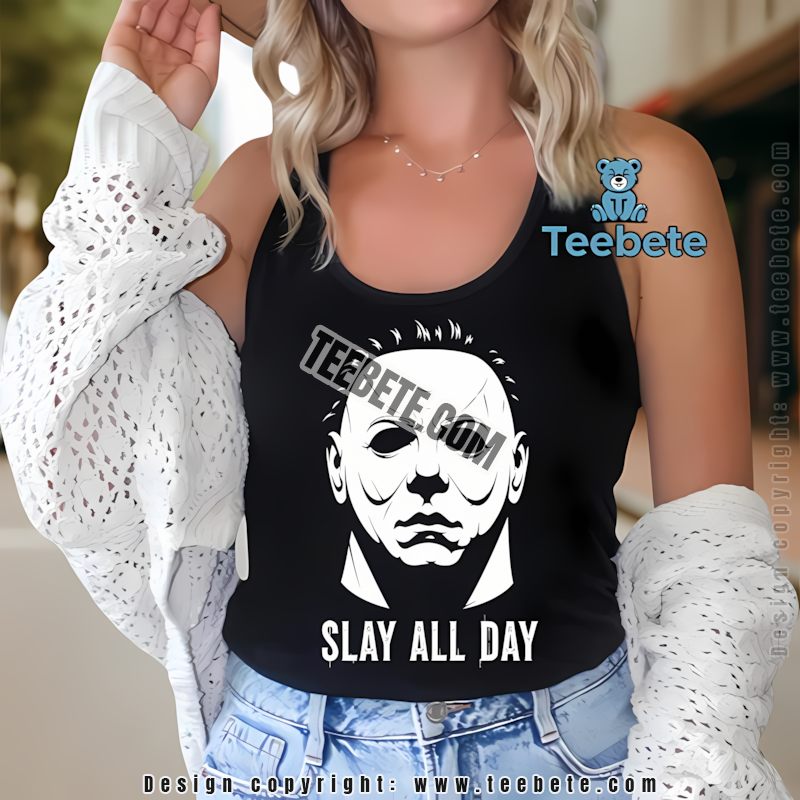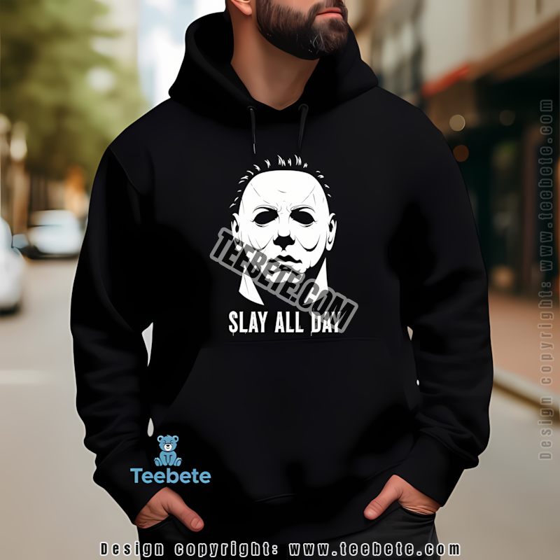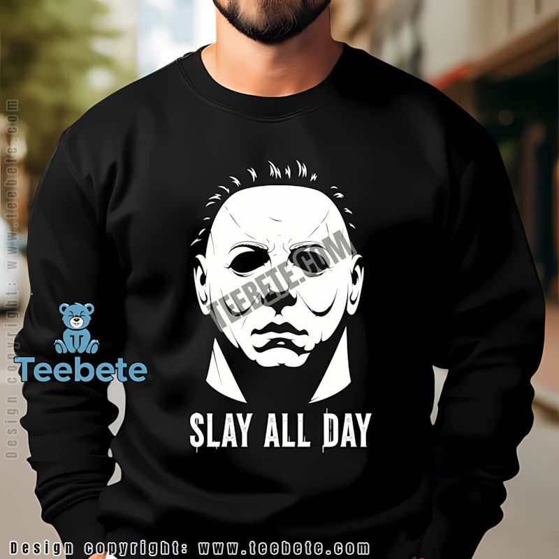Don’t miss your chance to own this piece of slay all day Halloween horror clothing. It’s more than just a shirt; it’s a celebration of the spirit of Halloween. Embrace the thrill and grab your very own Michael Myers Slay All Day Horror Halloween Graphic Shirt from Teebete today!