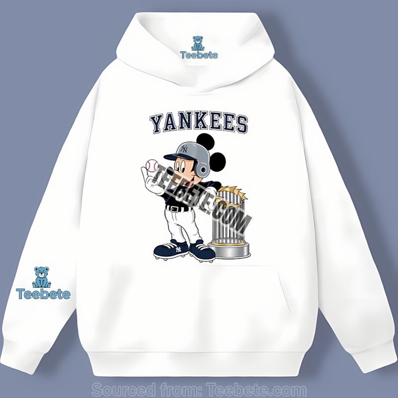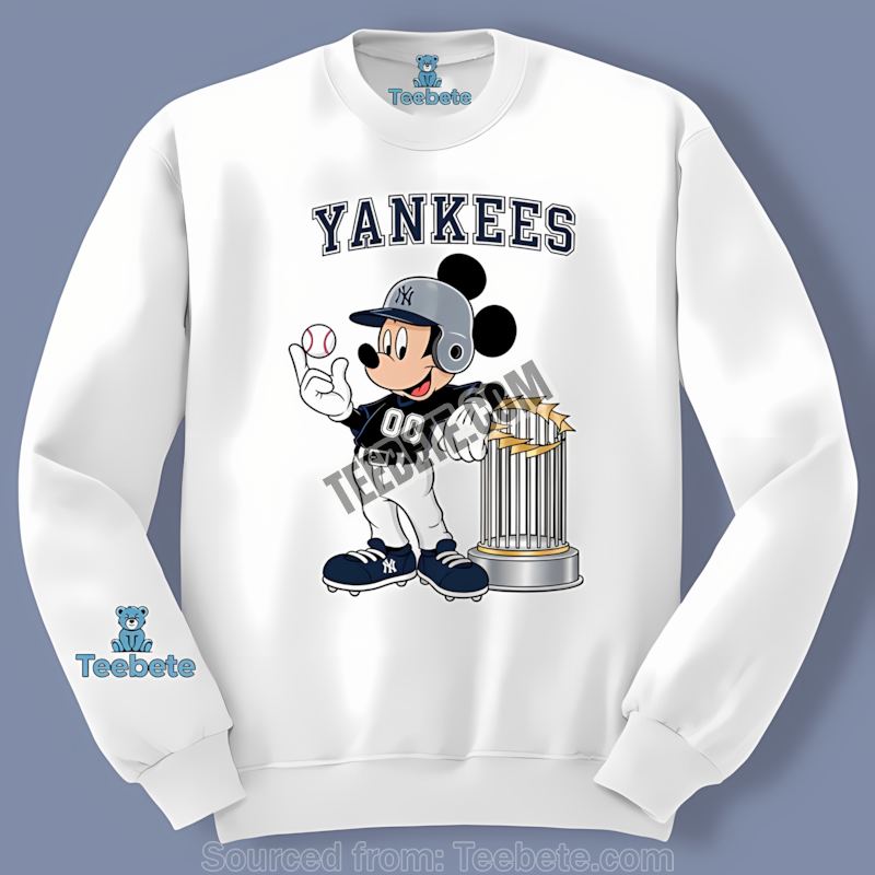Inspired by the iconic imagery of both Mickey and the Bronx Bombers, we’ve crafted a design that’s both nostalgic and undeniably cool. Mickey, wielding a baseball bat with a determined grin, stands proudly against a backdrop of classic Yankees imagery. This truly is a New York Yankees cartoon fan tee that speaks volumes.