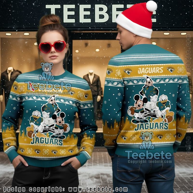 Product information "Jacksonville Jaguars Mickey Goofy Donald Duck Ugly Christmas Sweater Green Cool"