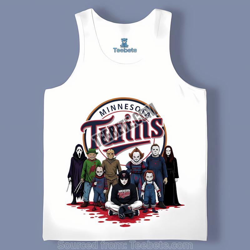 Show off your spooky side this Halloween season! Order your Minnesota Twins Horror Movie Characters Halloween Shirt today and prepare to scare up some serious style.