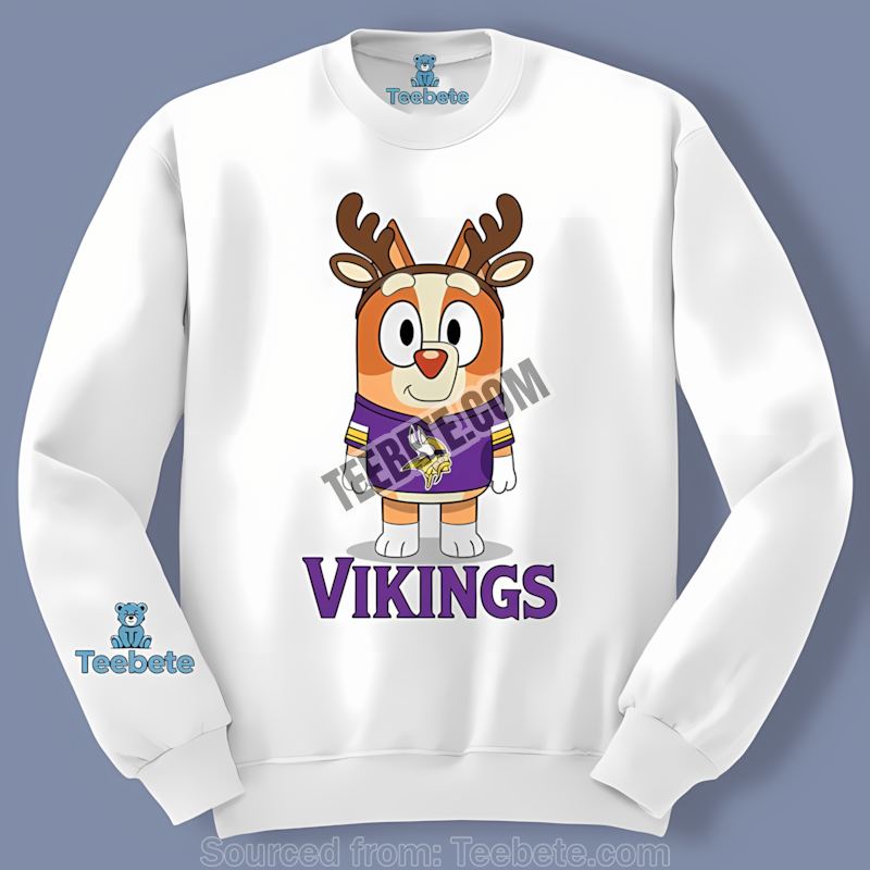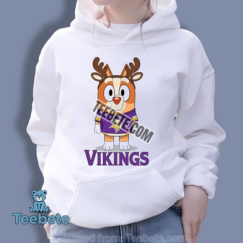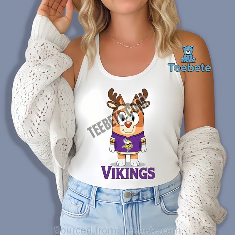 Why wait to show your support and celebrate the season in style? Embrace the holiday spirit and grab your Minnesota Vikings Bluey Bingo Reindeer Christmas Shirt now. Explore the collection at Teebete and elevate your festive wardrobe today!