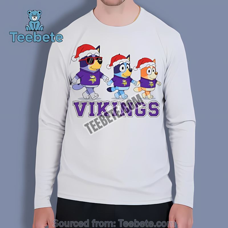 Featuring vibrant, long-lasting prints, the Bluey Minnesota Vikings festive shirt is a testament to quality that lasts. No matter how many times you wear it—be it at the Christmas parade or during game day with your friends—the colors will remain vibrant and the fabric will hold up beautifully, ensuring you can cherish those holiday memories for years to come. Available in a variety of formats like hoodies, tank tops, unisex long sleeves, sweatshirts, and V-necks, there is a style to suit everyone in your family.