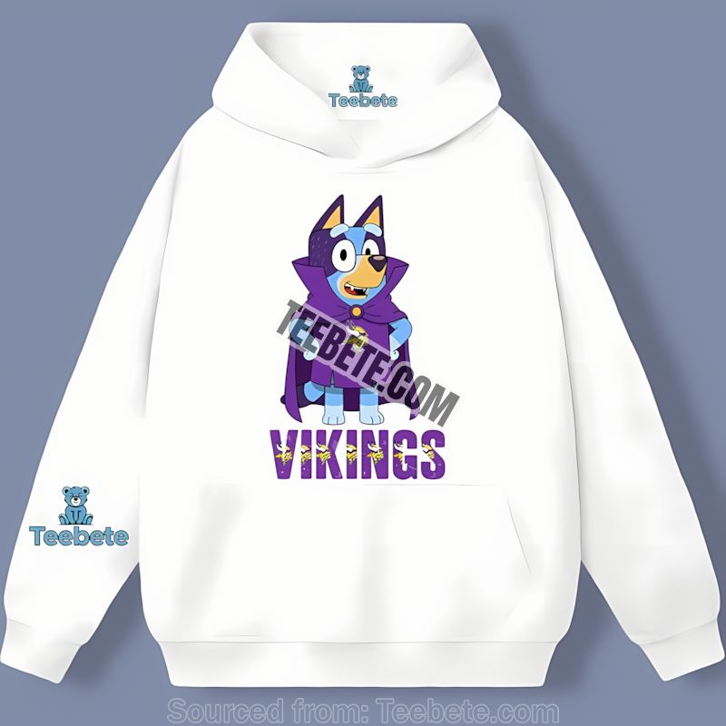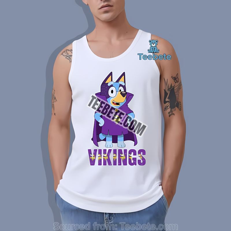 Explore our variety of options to match your personal style! The Bluey themed Minnesota Vikings shirt is available not only in standard short-sleeve but also in options like Hoodies, Men Tank Tops, Women Tank Tops, Unisex Long Sleeve, Sweatshirts, and V-necks. This diverse lineup allows every fan to express their allegiance creatively and comfortably, suitable for all seasons—from crisp autumn nights to heated indoor events.