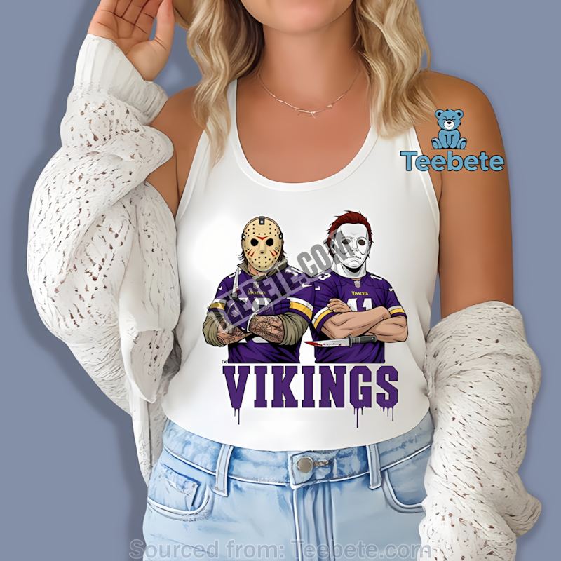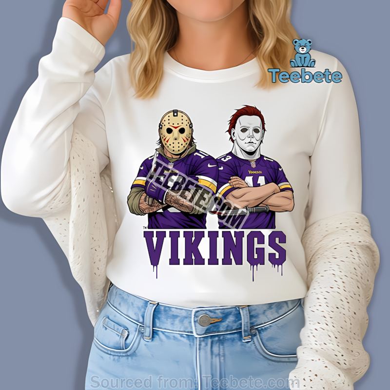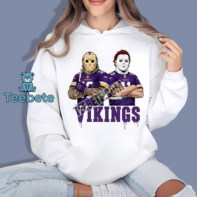 Don’t miss your chance to showcase your unique fandom in style. Elevate your wardrobe today and grab your Minnesota Vikings Jason Voorhees Michael Myers Horror Shirt now!