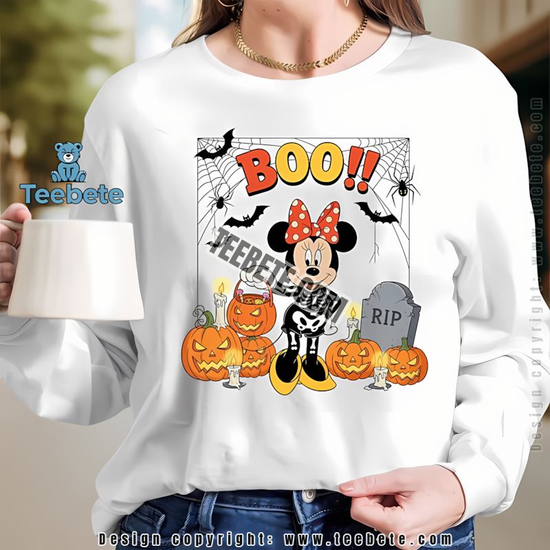 Crafted from premium cotton, this shirt prioritizes comfort without compromising on style. The fabric is soft against the skin, making it suitable for all-day wear. Additionally, the breathable material ensures you stay cool and collected, whether you’re engaging in spooky activities or simply enjoying a fun night out. Featuring high-quality print clarity, the vibrant visuals of Minnie Mouse in her skeletal form are designed to be eye-catching and long-lasting, ensuring that your festive look remains striking throughout the season.