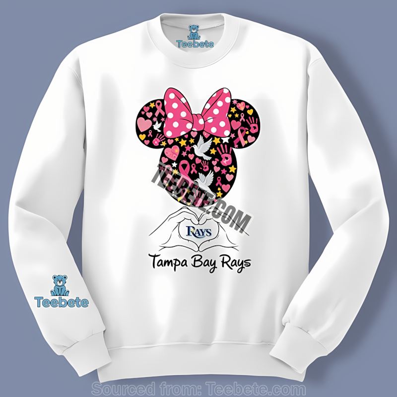 The striking graphic features Minnie Mouse proudly wearing a Tampa Bay Rays jersey with a subtle pink ribbon incorporated into the design. This clever detail elegantly merges the playful imagery of Minnie with the serious message of breast cancer awareness. The result is a Tampa Bay Rays Graphic Shirt that’s as stylish as it is meaningful, allowing you to wear your heart on your sleeve—literally. It’s a wonderful way to show support for the Rays and raise awareness during breast cancer awareness month and beyond.